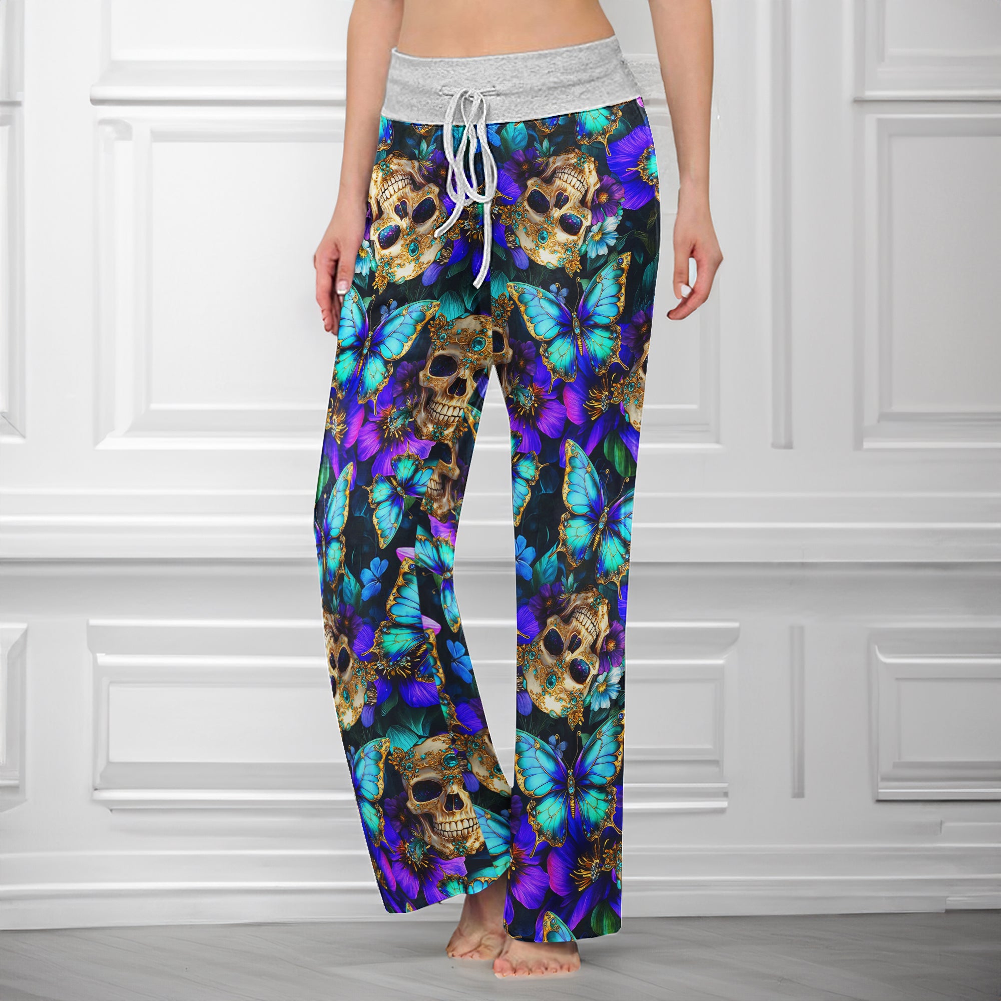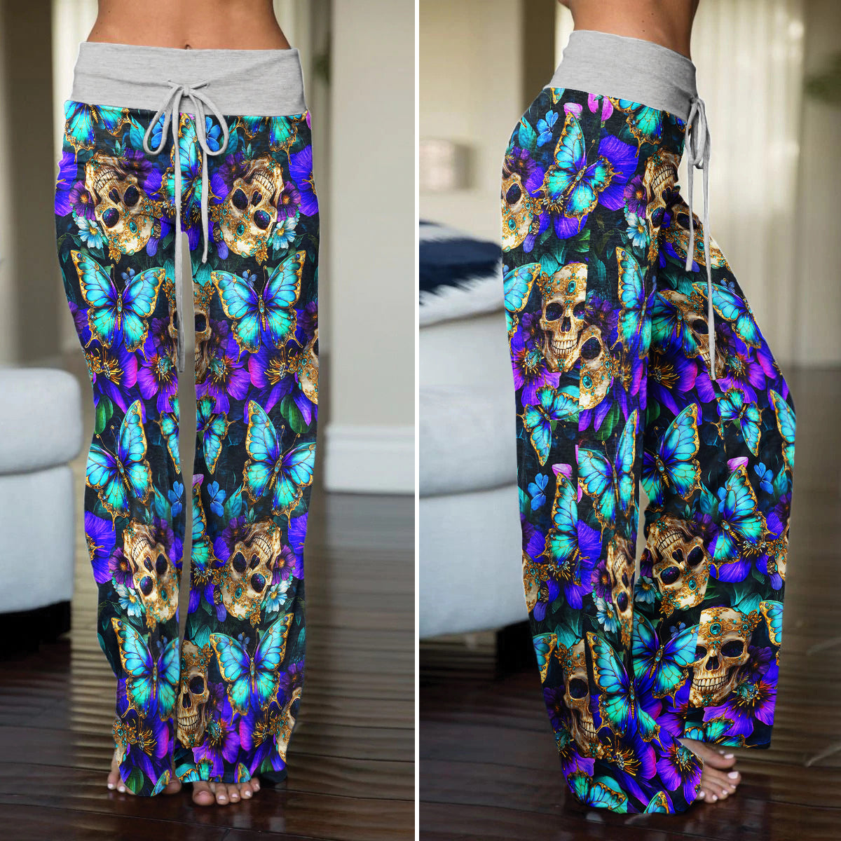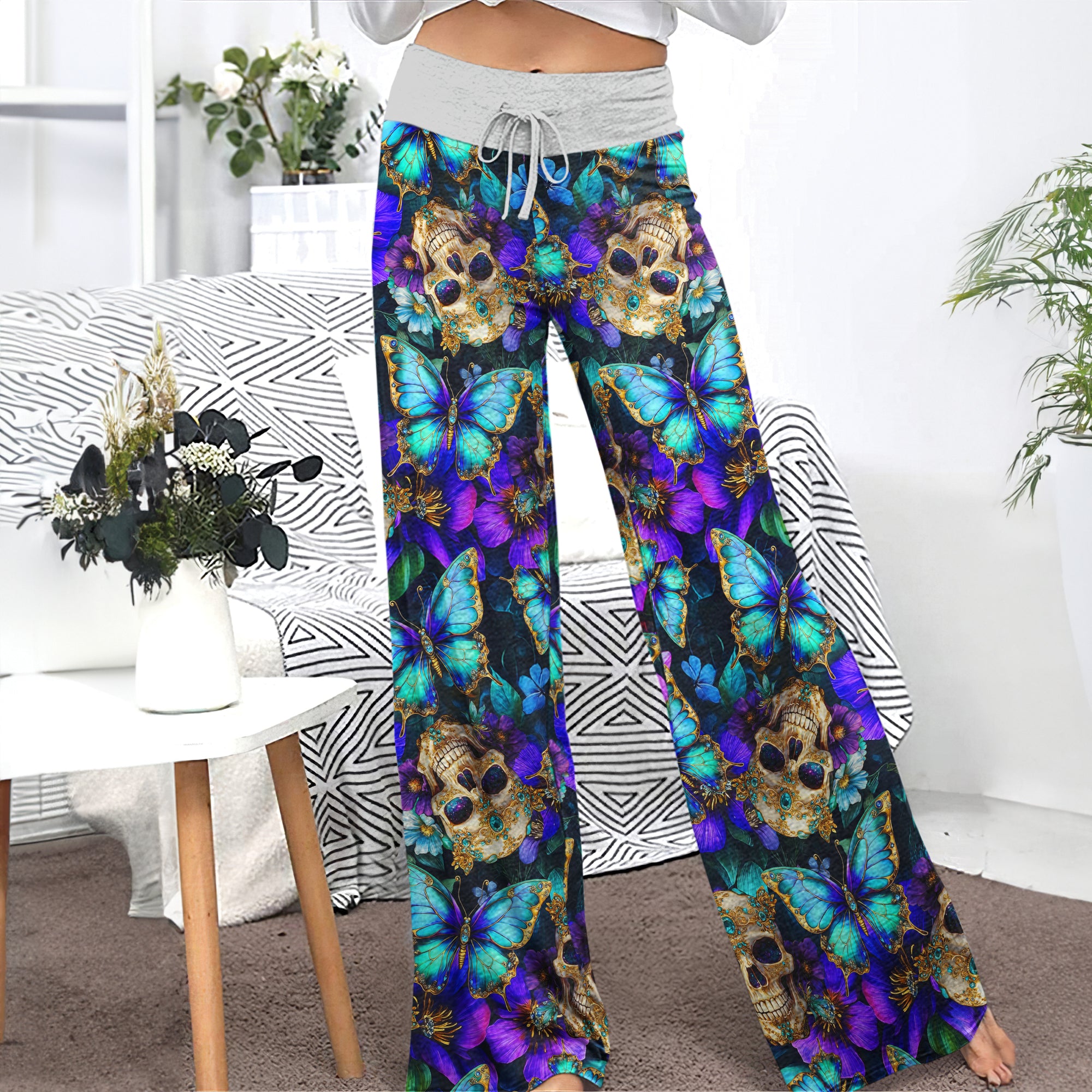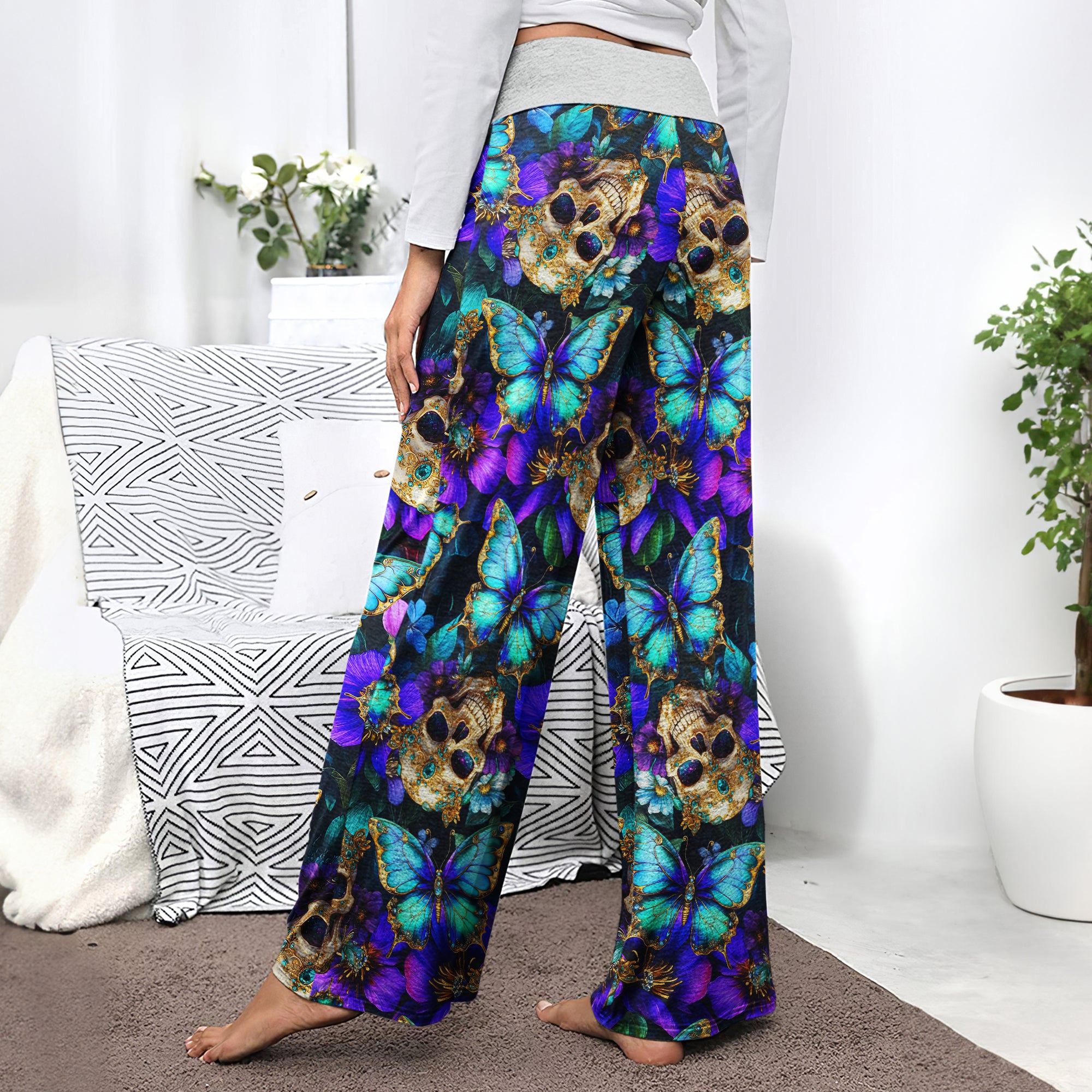 Abstract Skull Butterfly Women's High-waisted Wide Leg Pants
