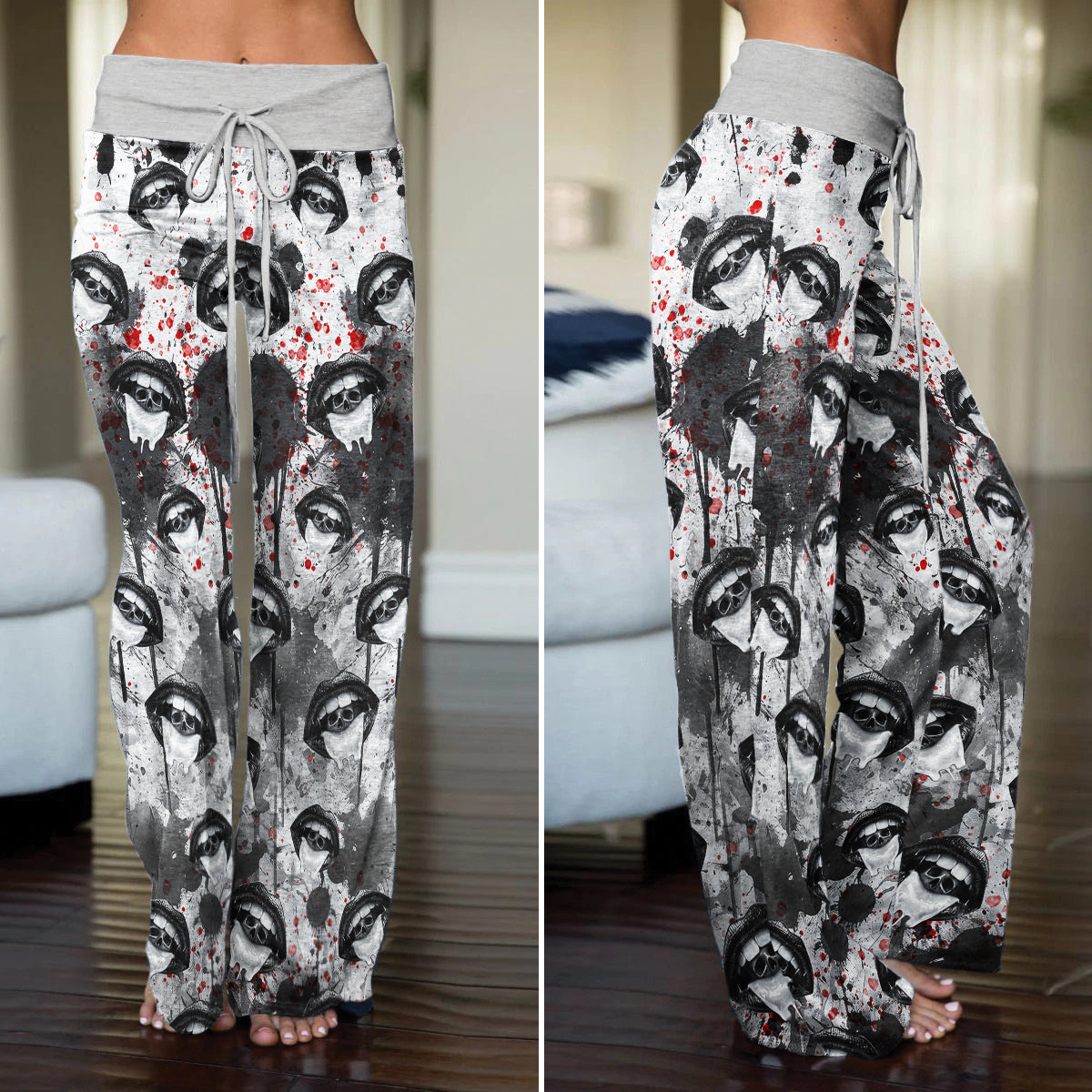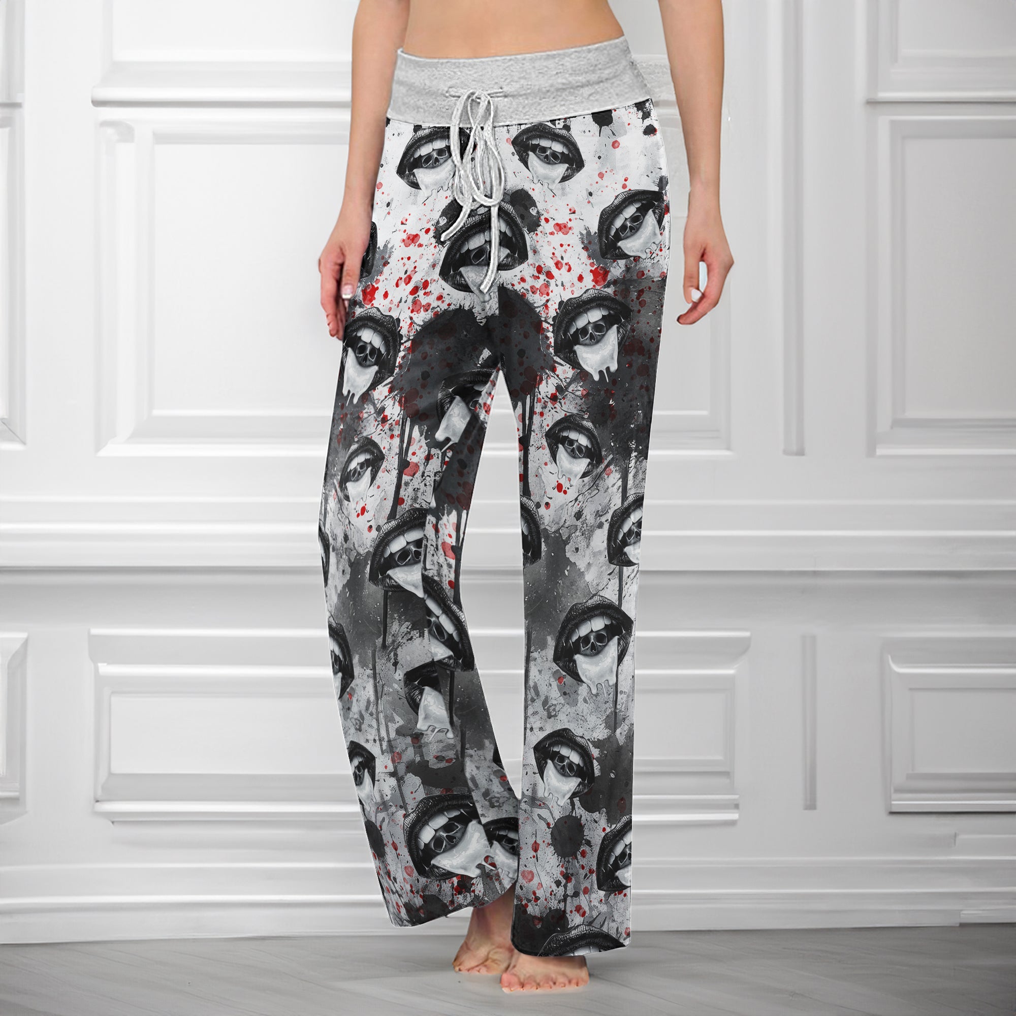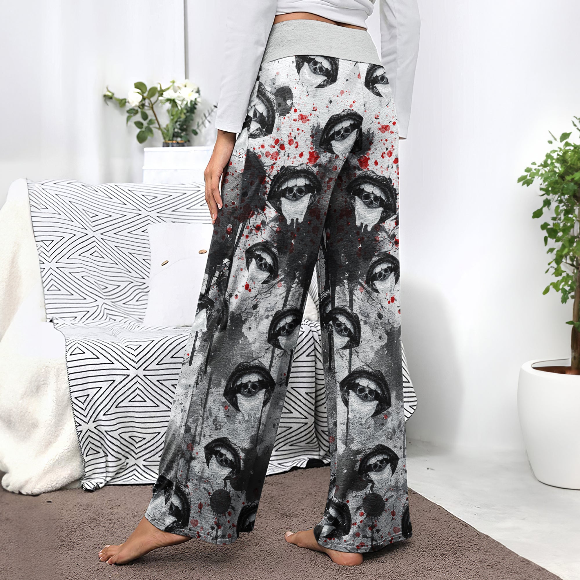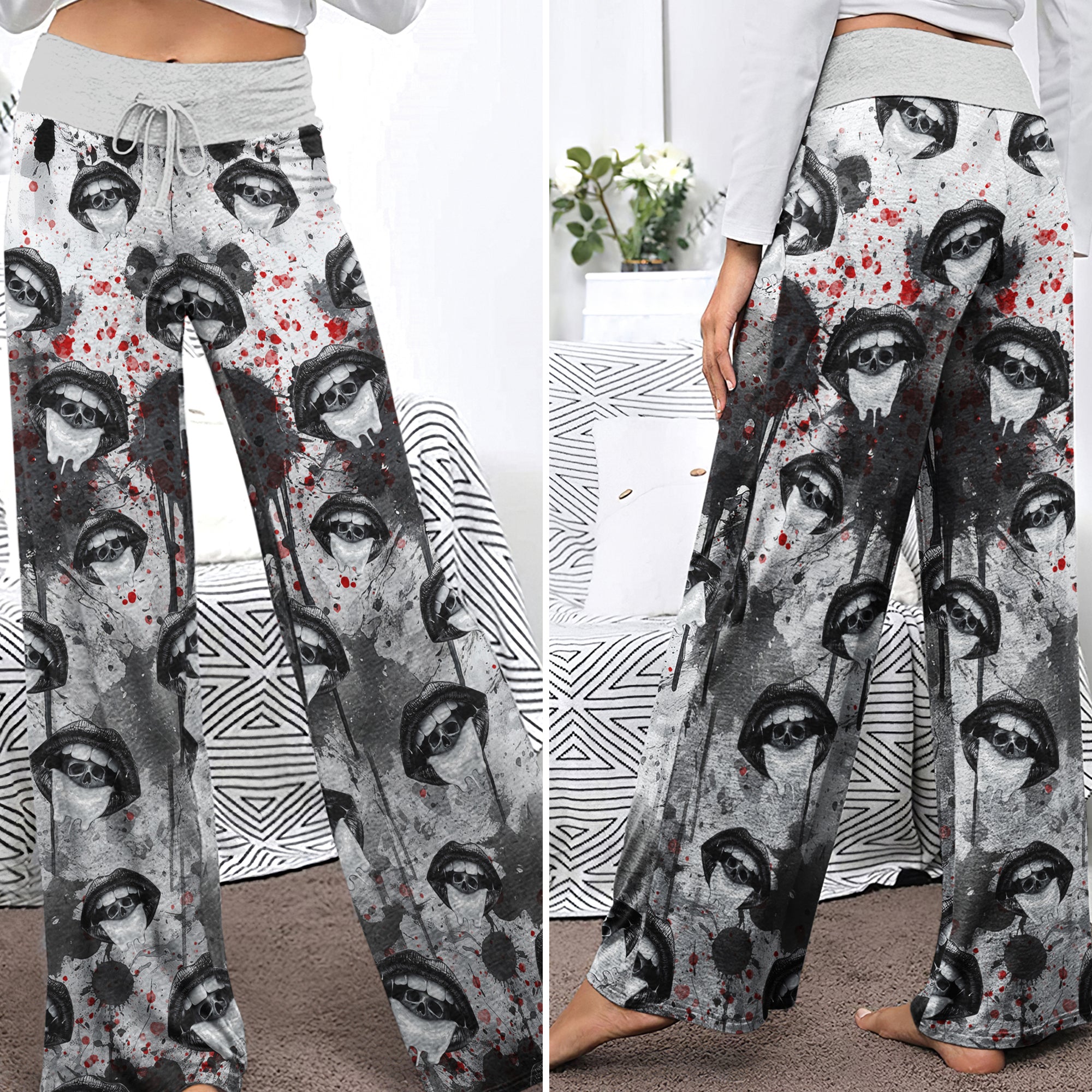 Black Skull Lip Pattern Women's High-waisted Wide Leg Pants