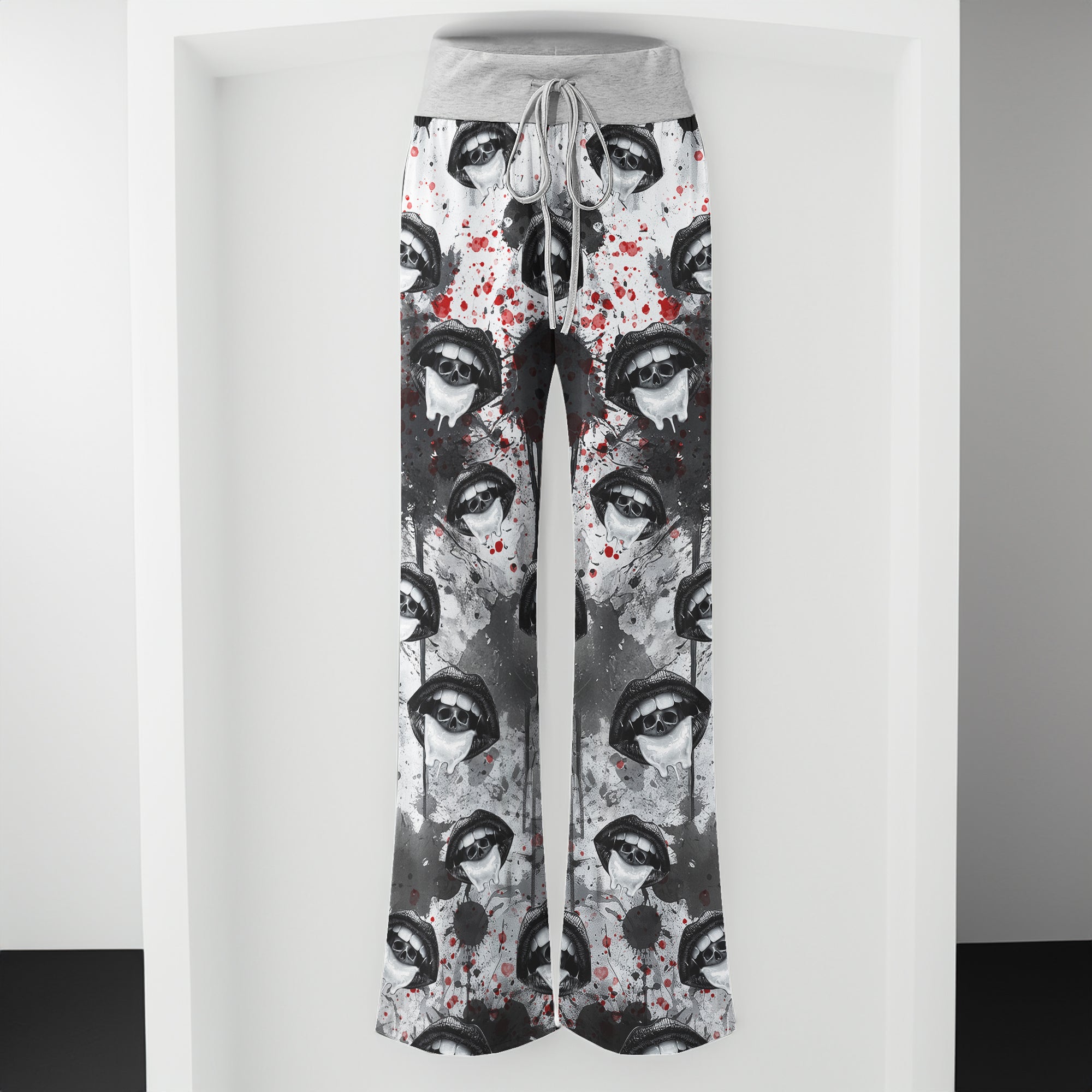 Black Skull Lip Pattern Women's High-waisted Wide Leg Pants | Wonder Skull