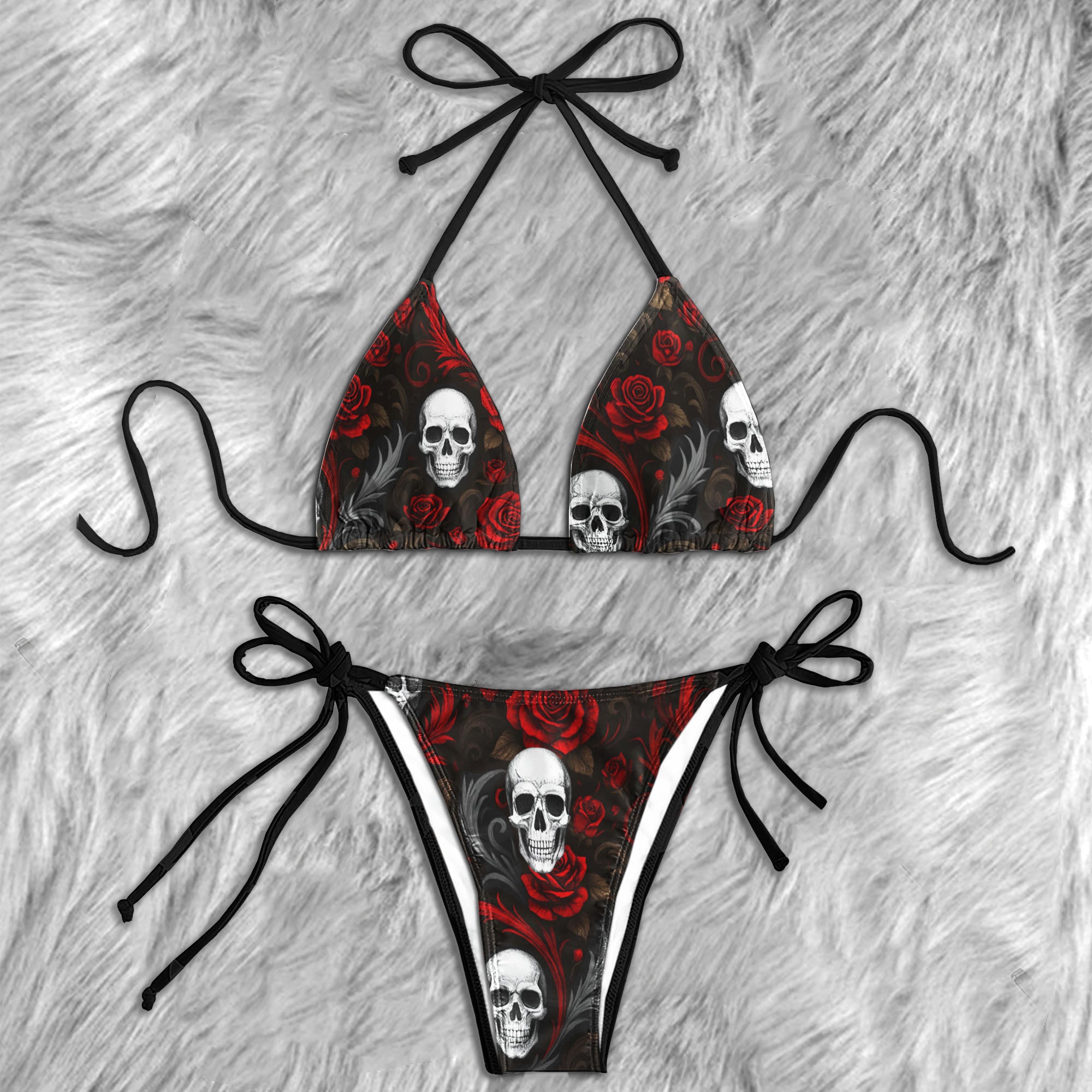 Blood Roses & Silent Skulls Micro Triangle Bikini Swimsuit