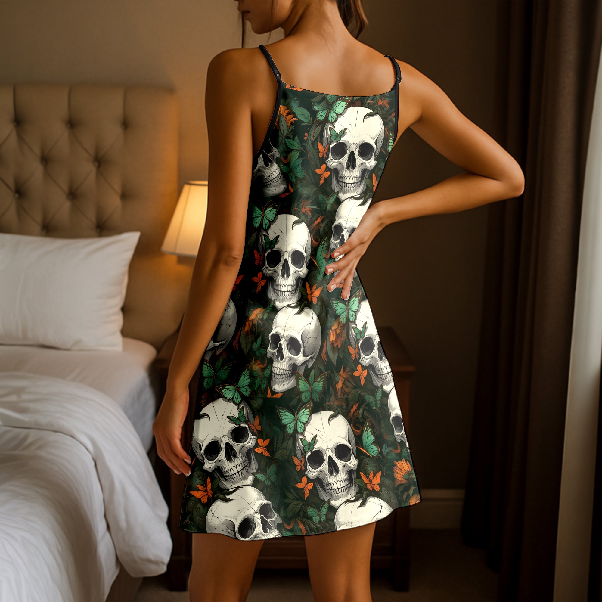 Unleash your inner goddess in this stunning gothic garden skull cami dress—perfect for slaying day and night.