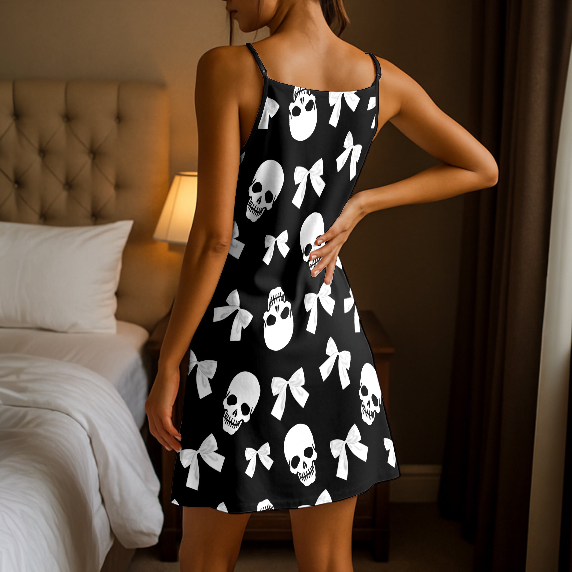 Spooky Ribbon Skull Pattern Short Cami Dress