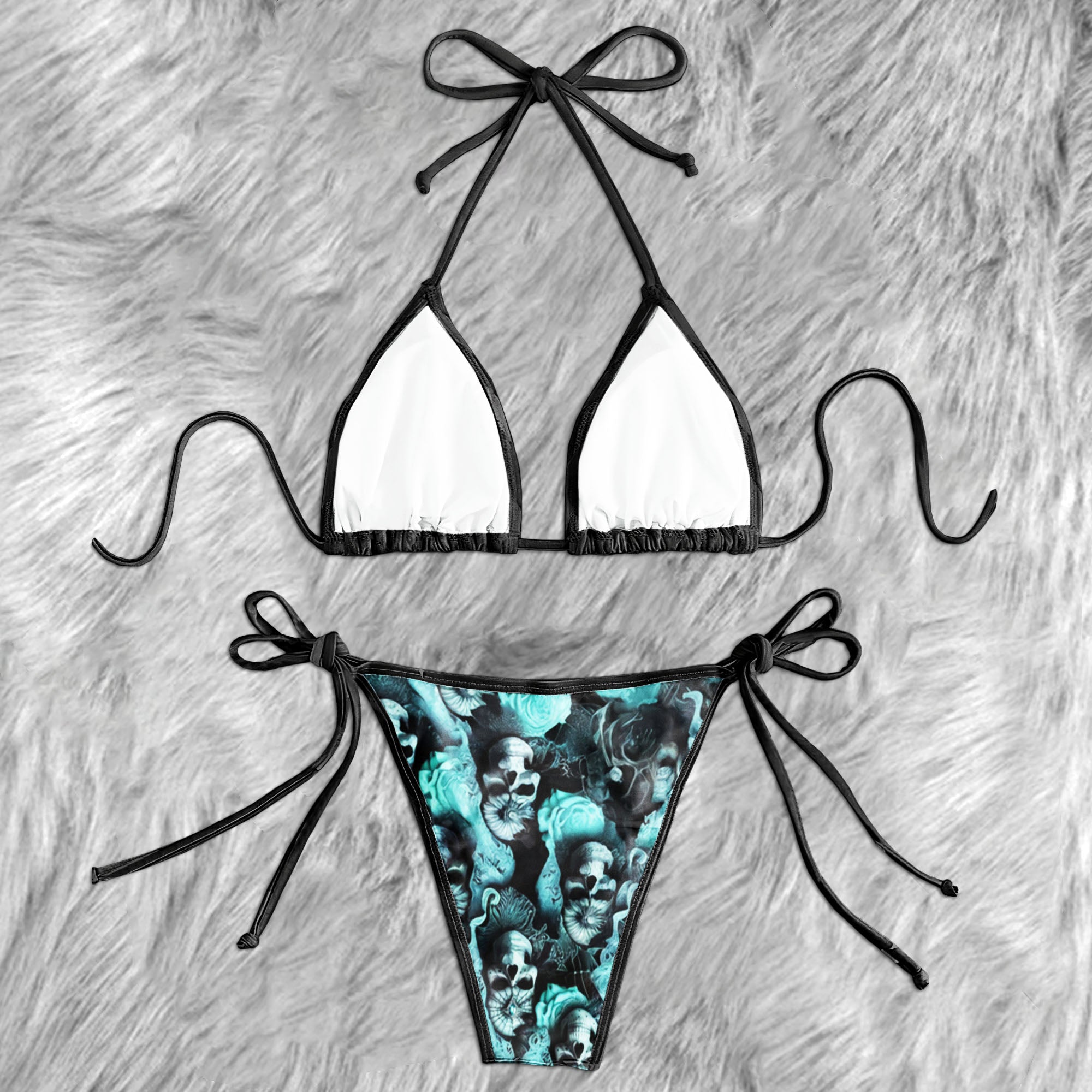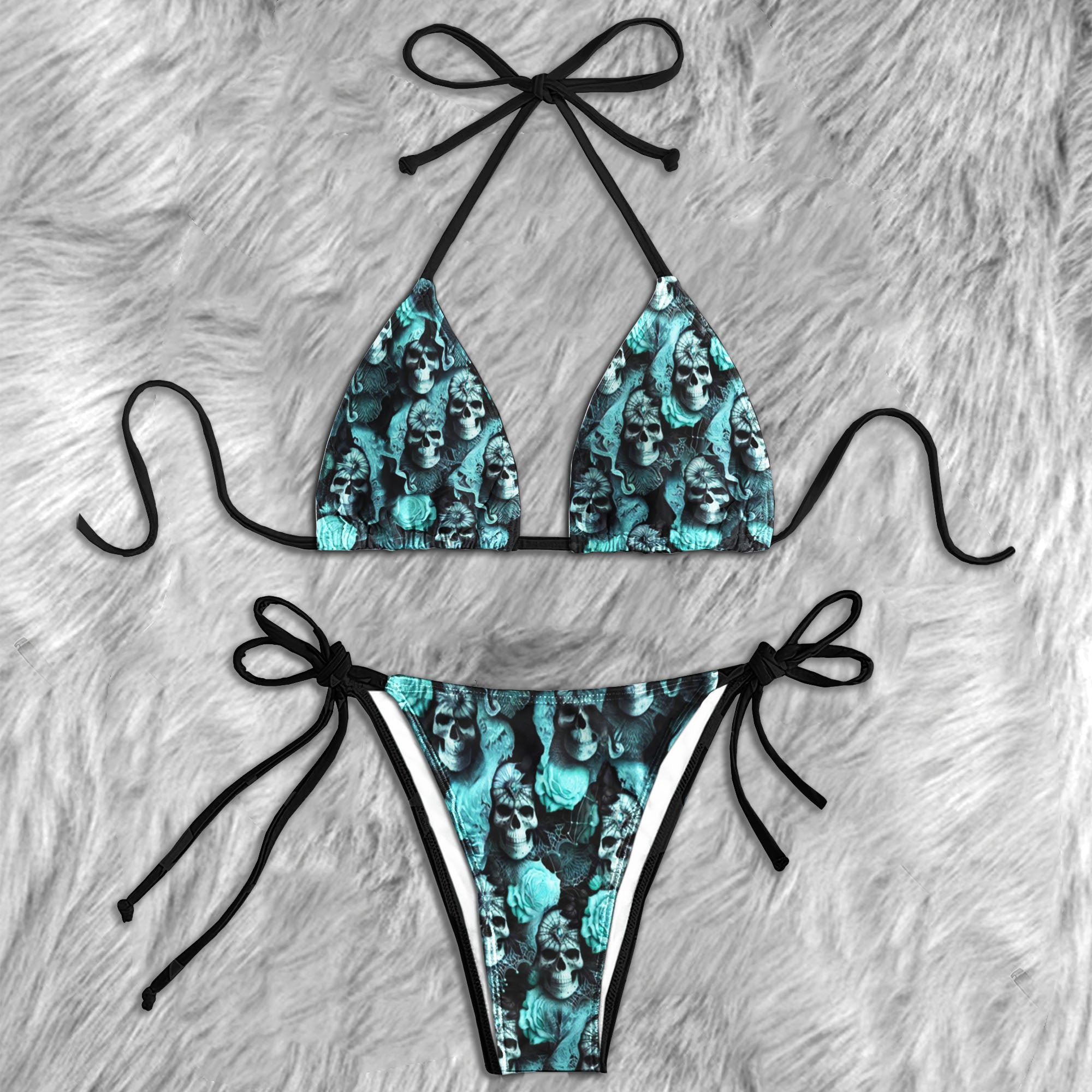 Cyan Skull Pattern Gothic Micro Triangle Bikini Swimsuit