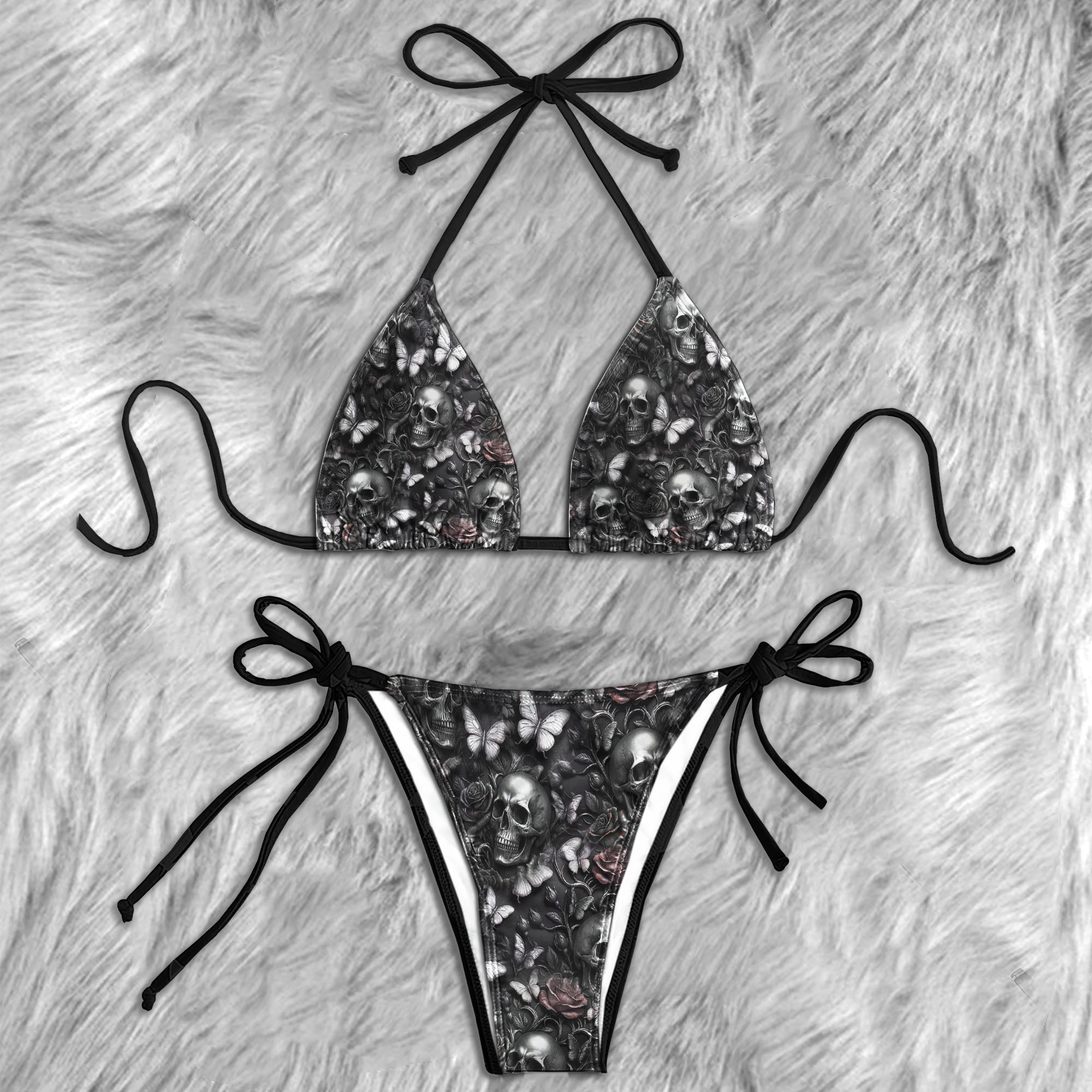 You can't handle this bikini. Dark Skull Gothic Pattern Micro Triangle Bikini Swimsuit
