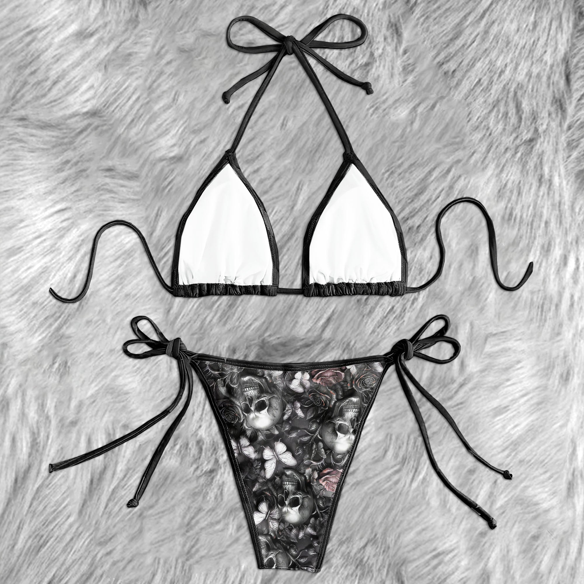 Dark Skull Gothic Pattern Micro Triangle Bikini Swimsuit