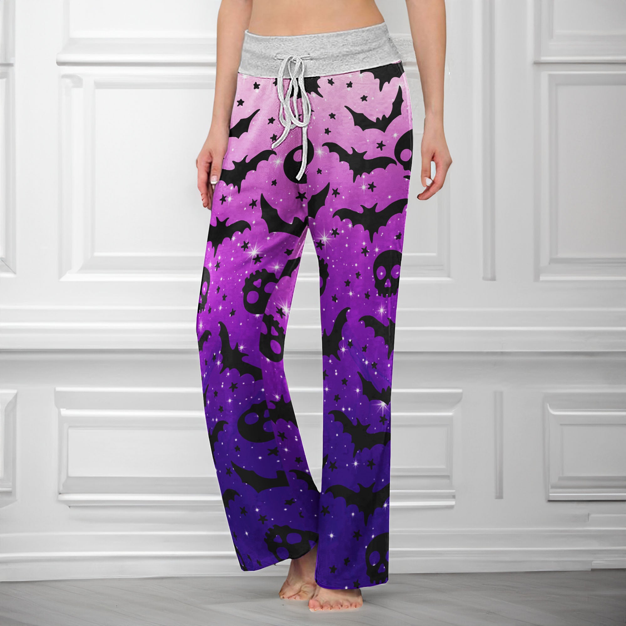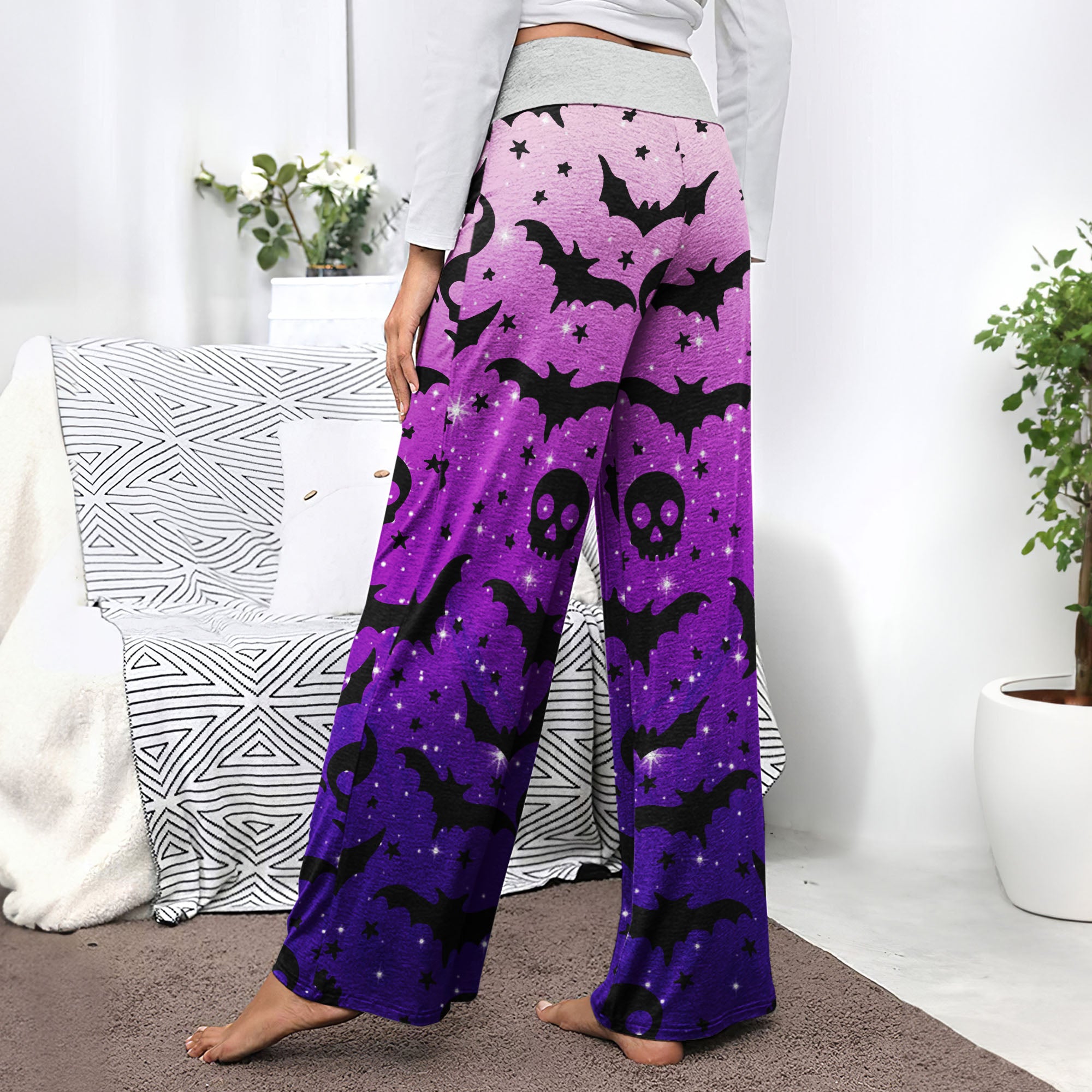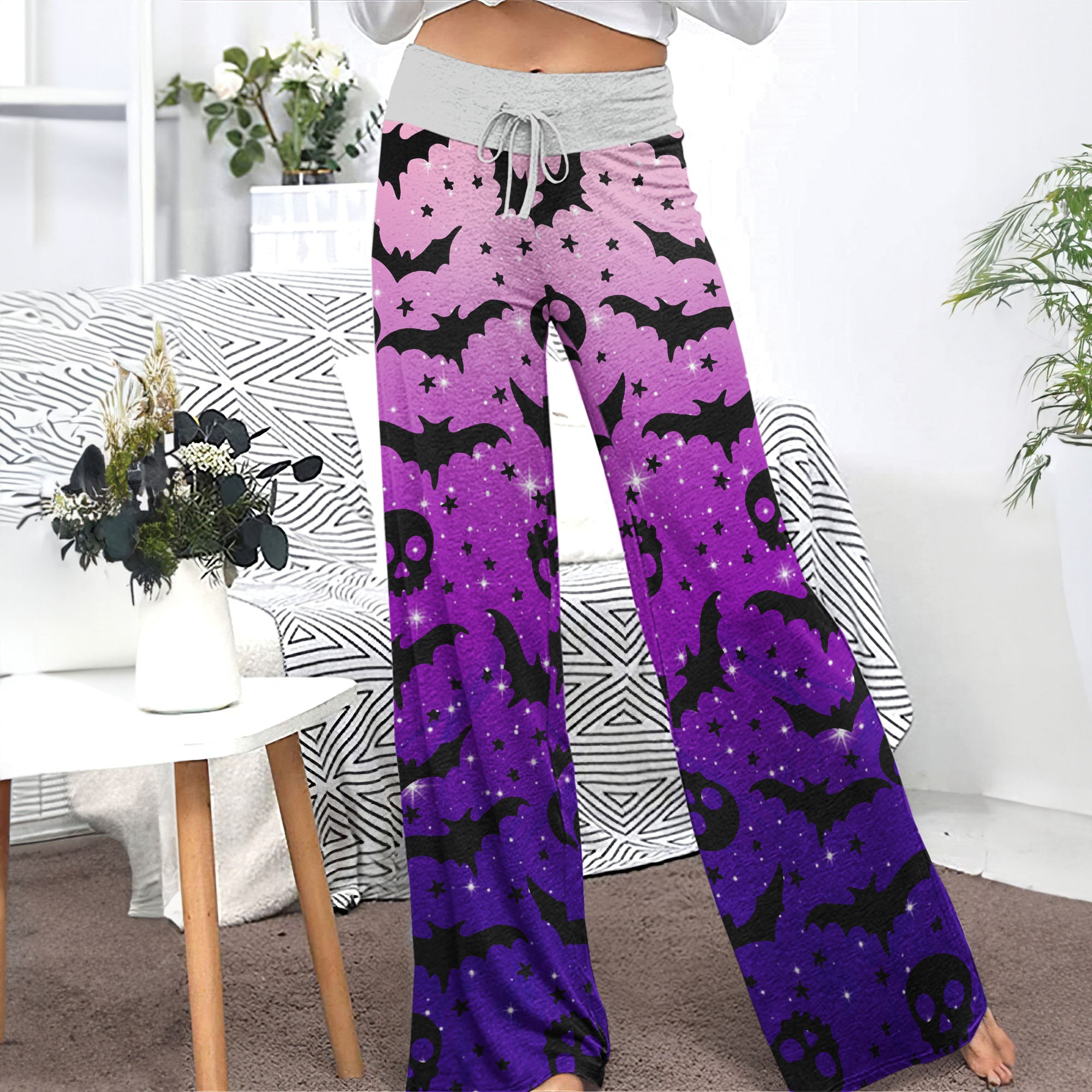 Galaxy Skull Bat Pattern Women's High-waisted Wide Leg Pants