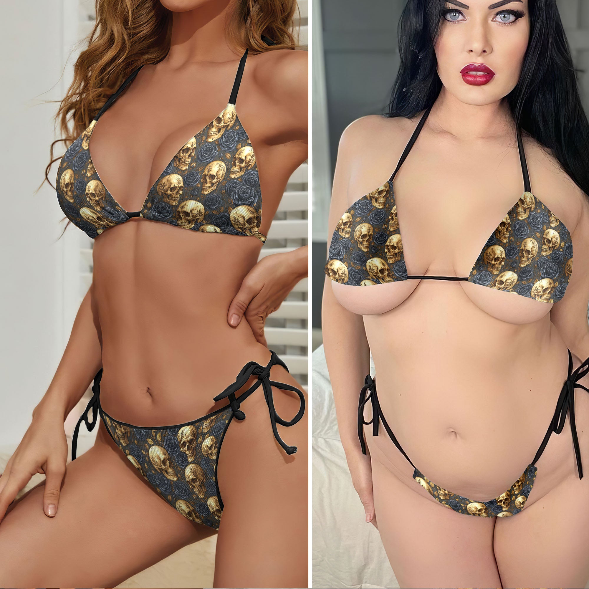 Golden Skull Midnight Rose Micro Triangle Bikini Swimsuit