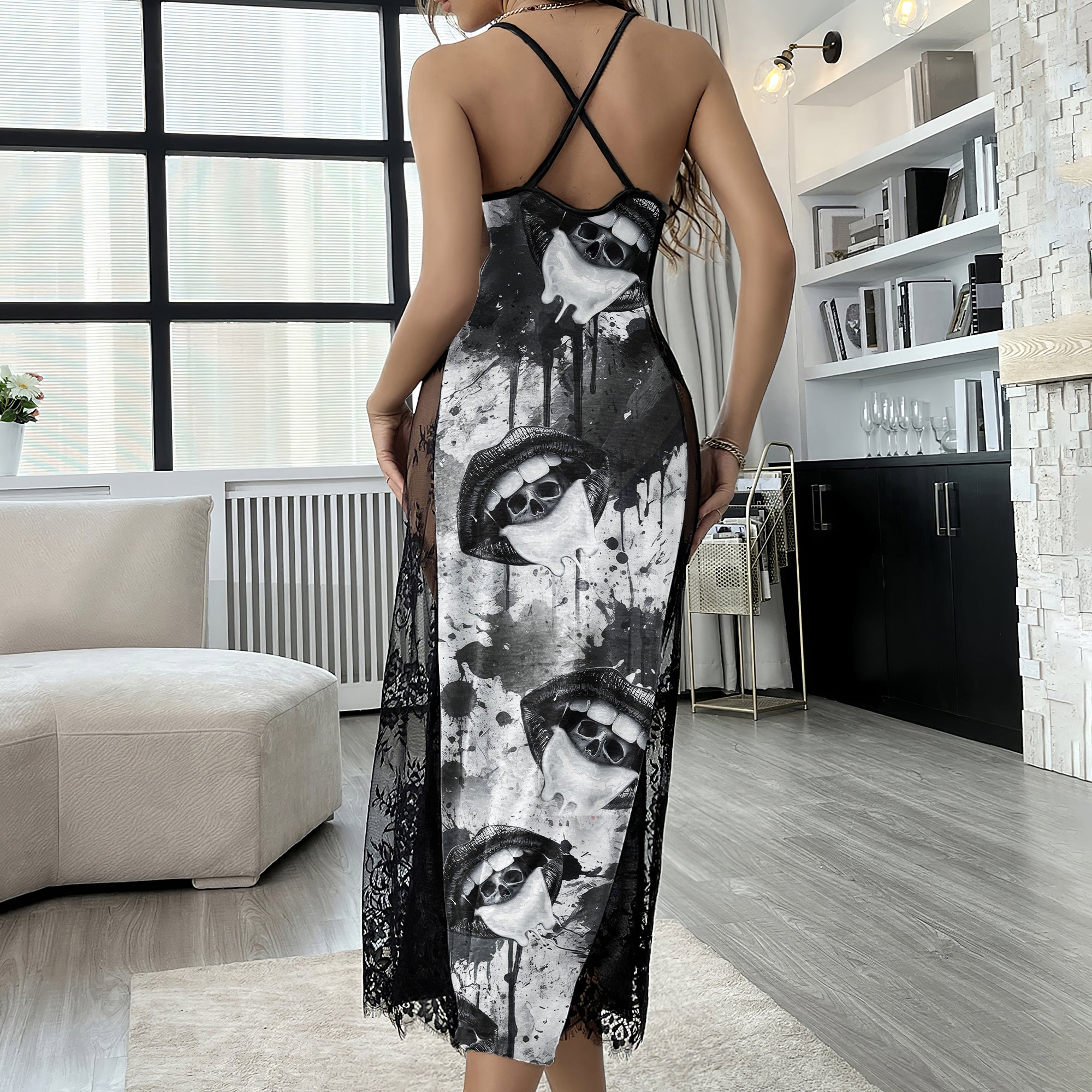 Gothic Skull Lip Pattern Women's Lace Cami Sleepwear