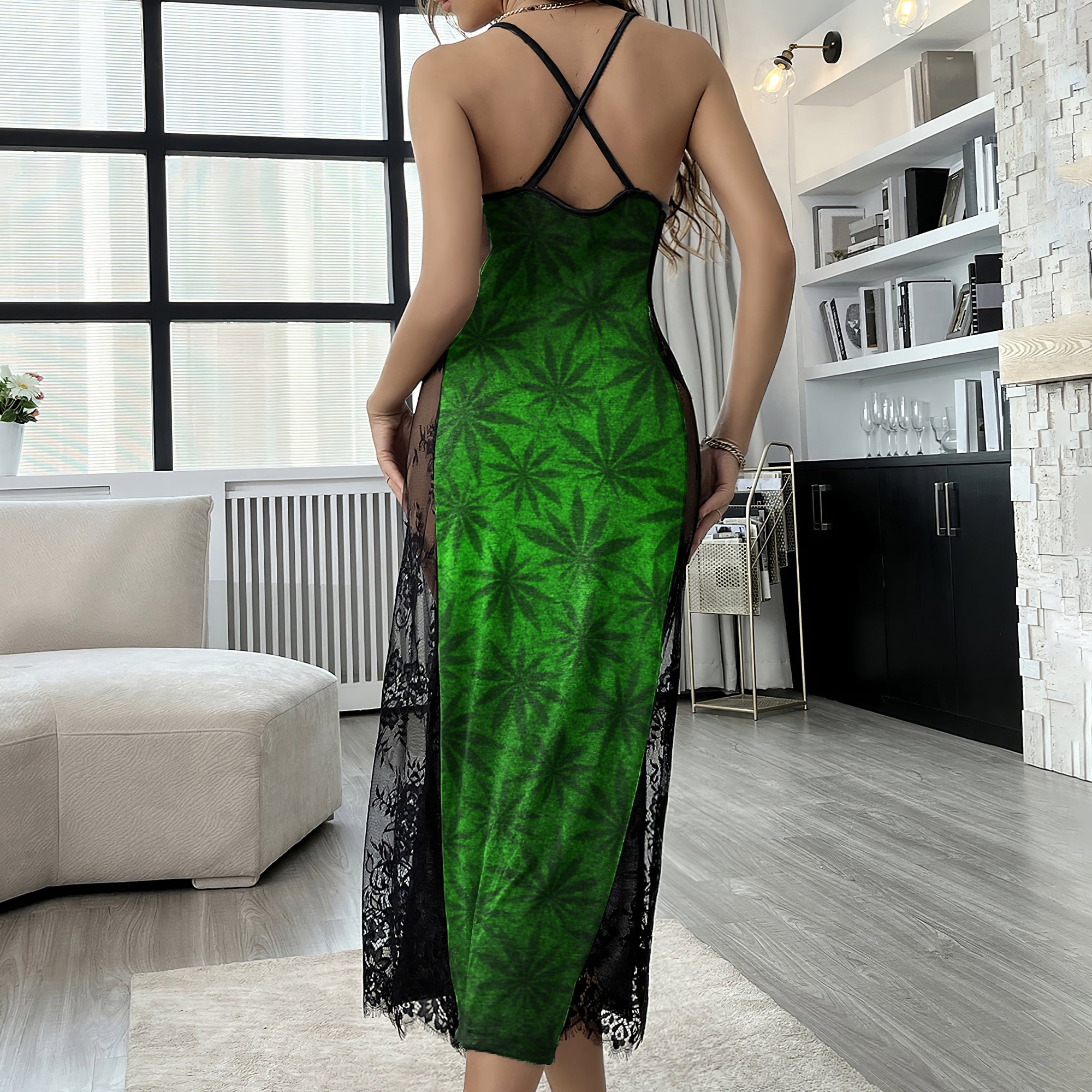 Green Leaf Skull Art Women's Lace Cami Sleepwear