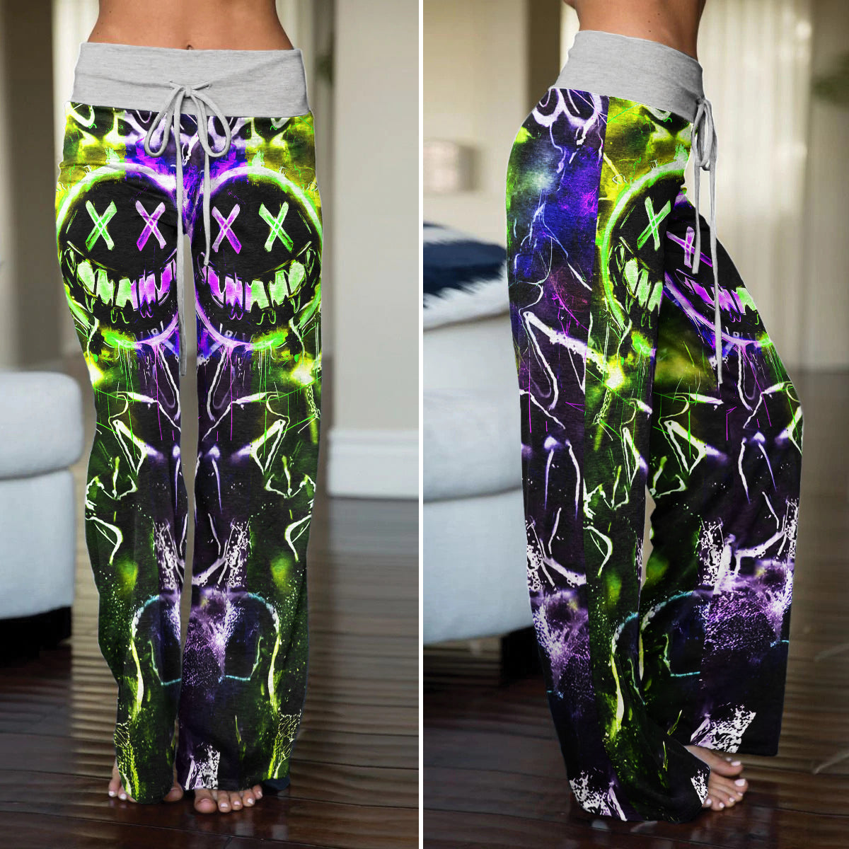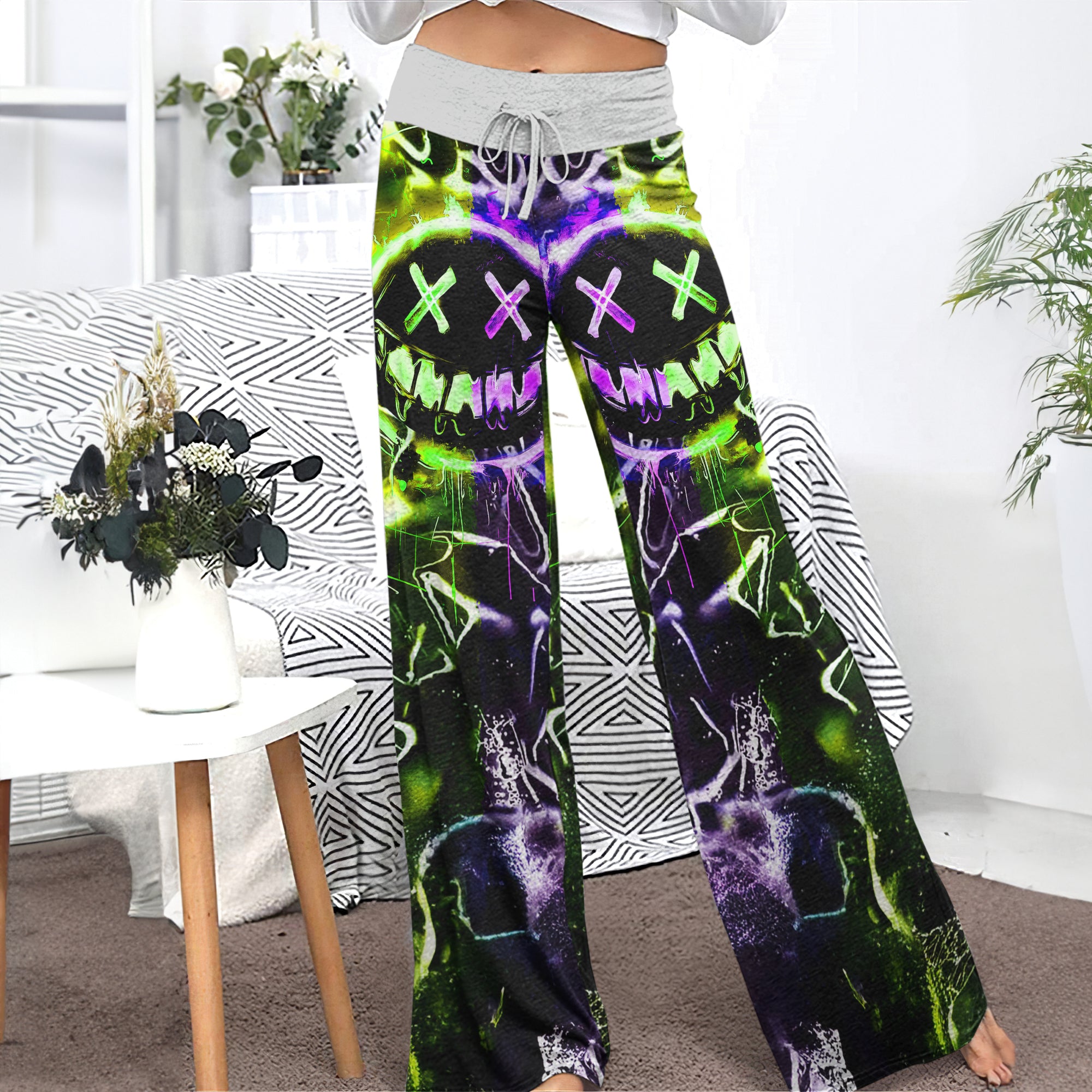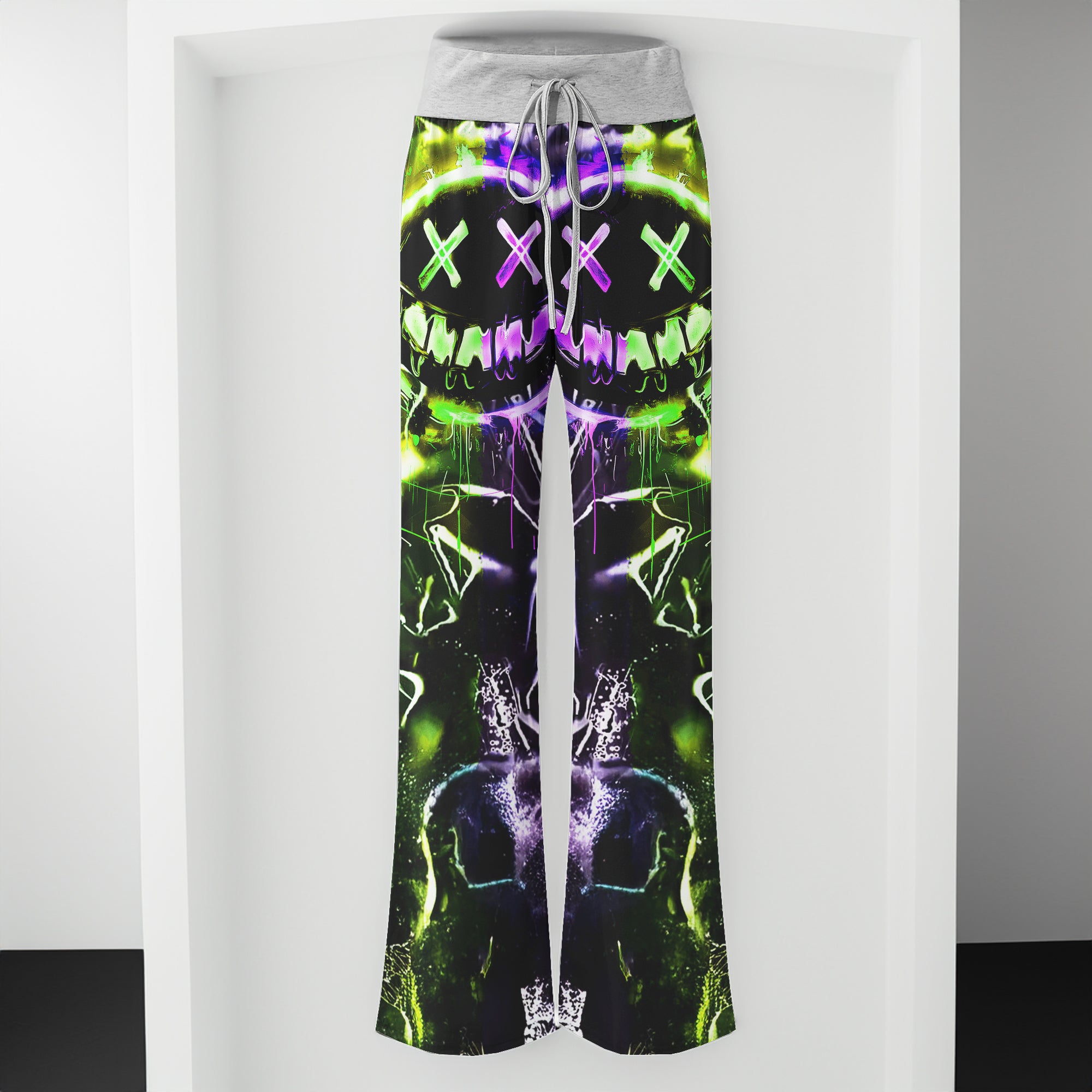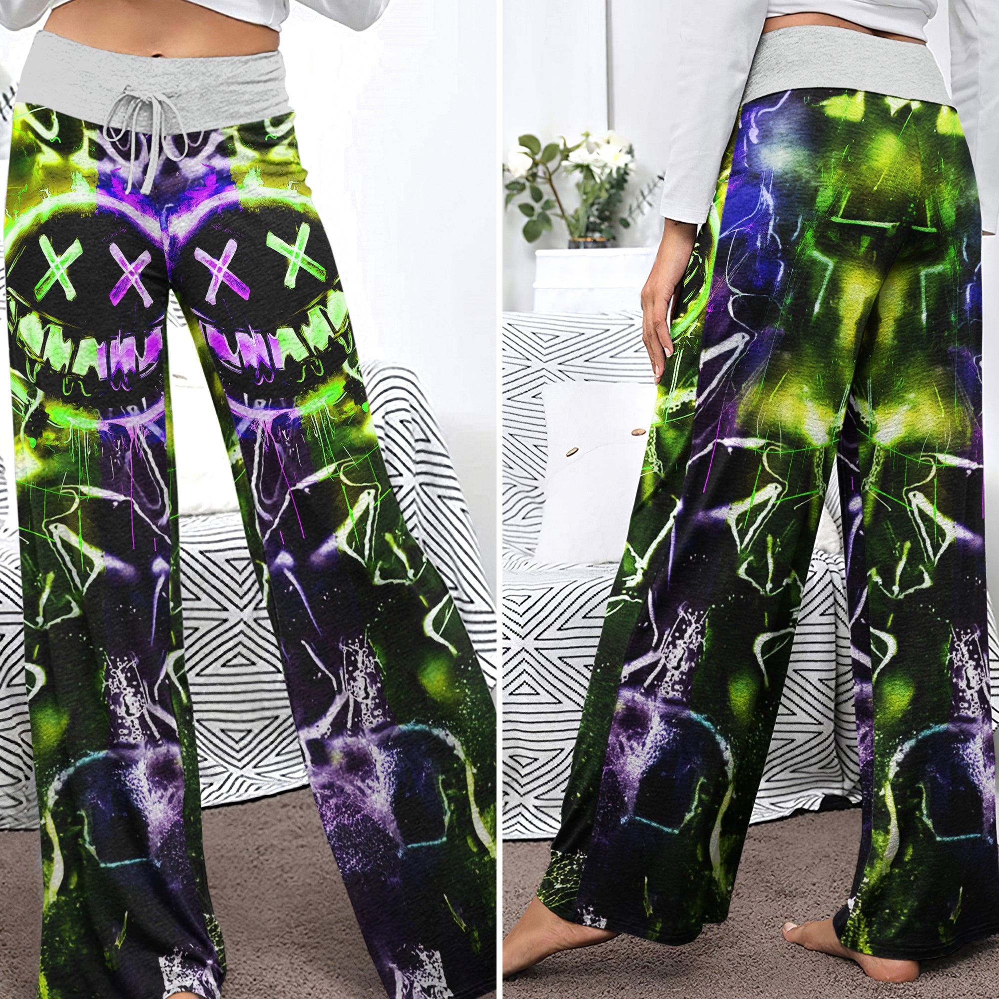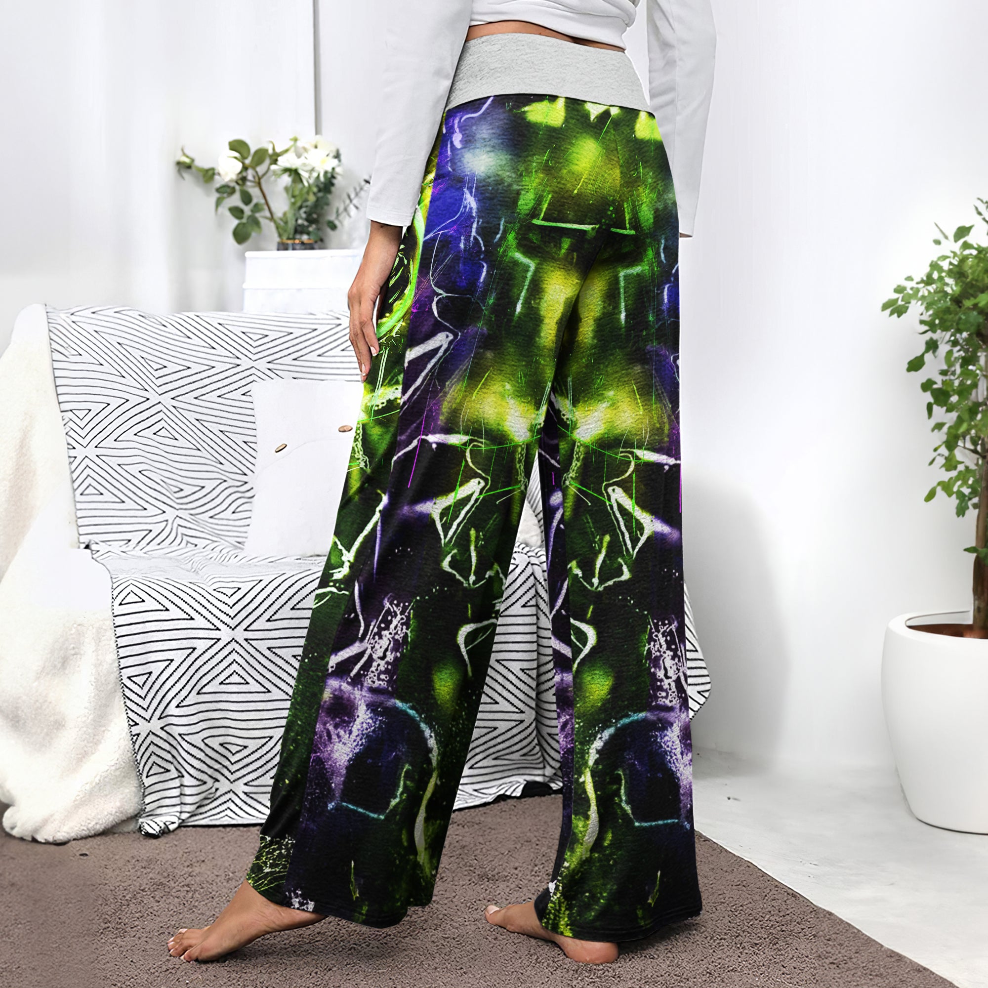 Green Purple Emo Art Women's High-waisted Wide Leg Pants | Wonder Skull