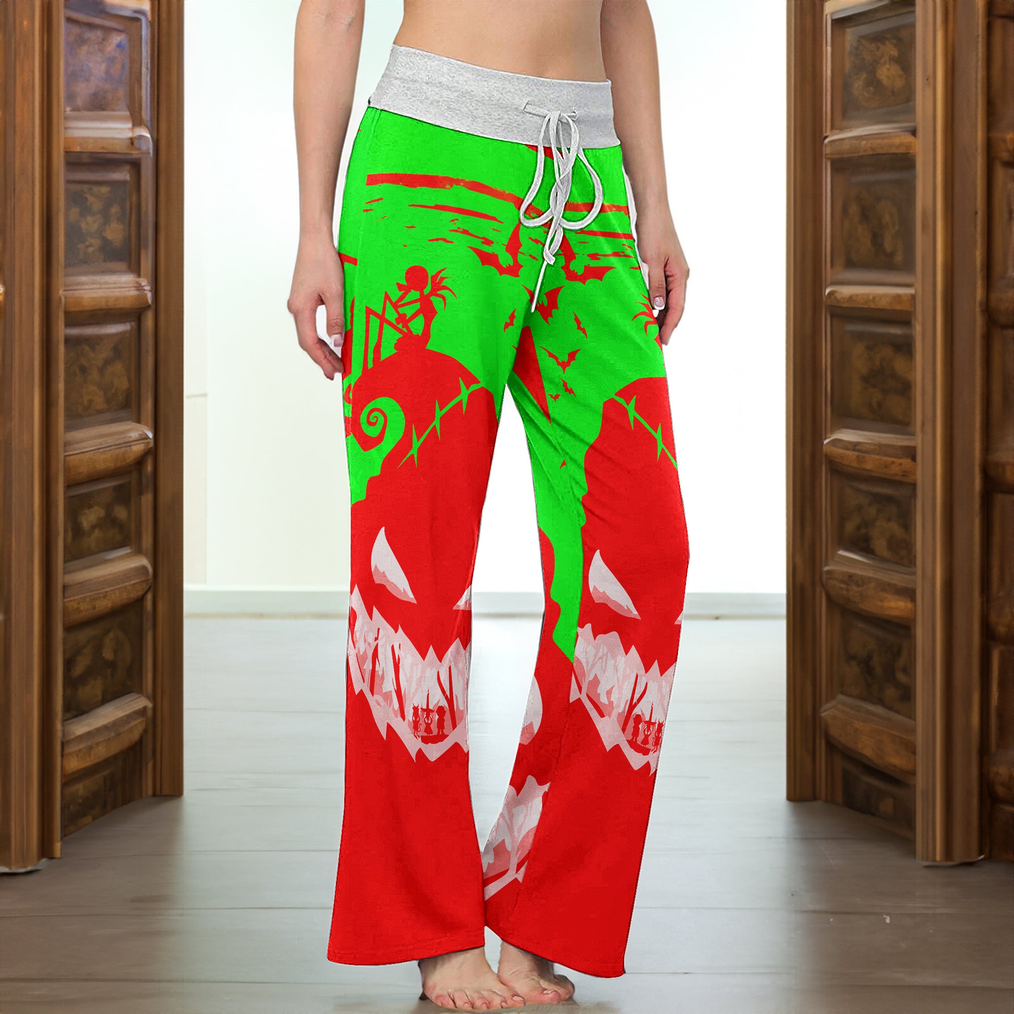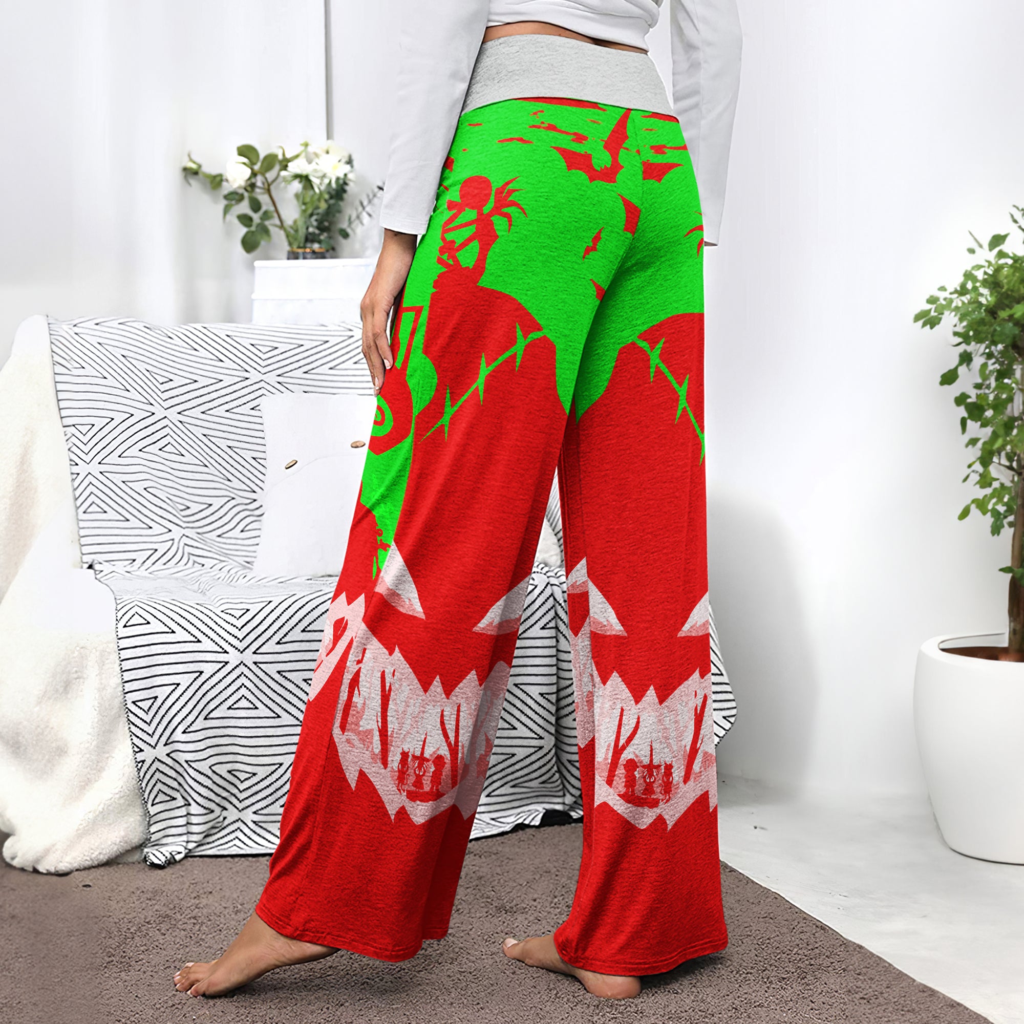 Green Red Nightmare Art Women's High-waisted Wide Leg Pants | Wonder Skull