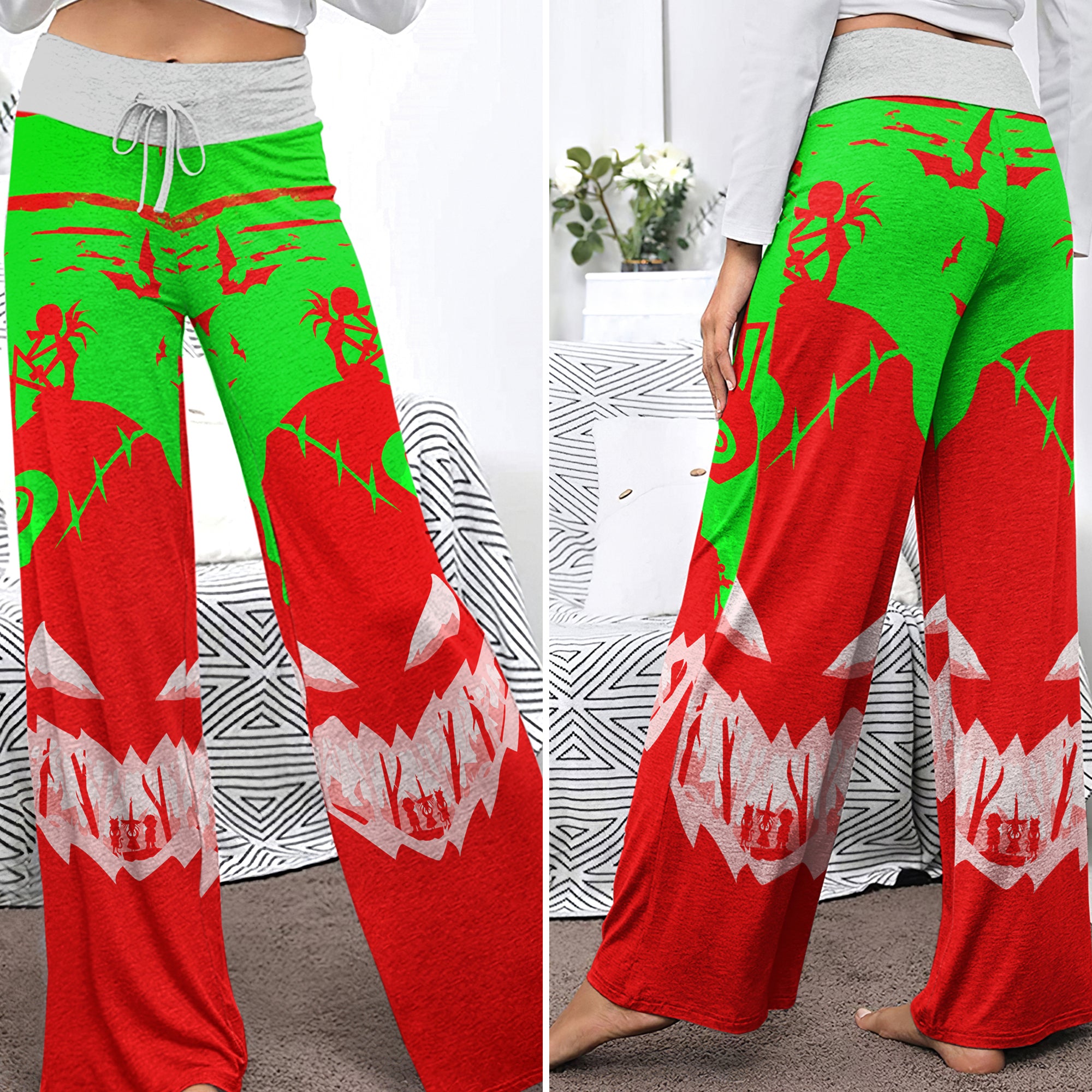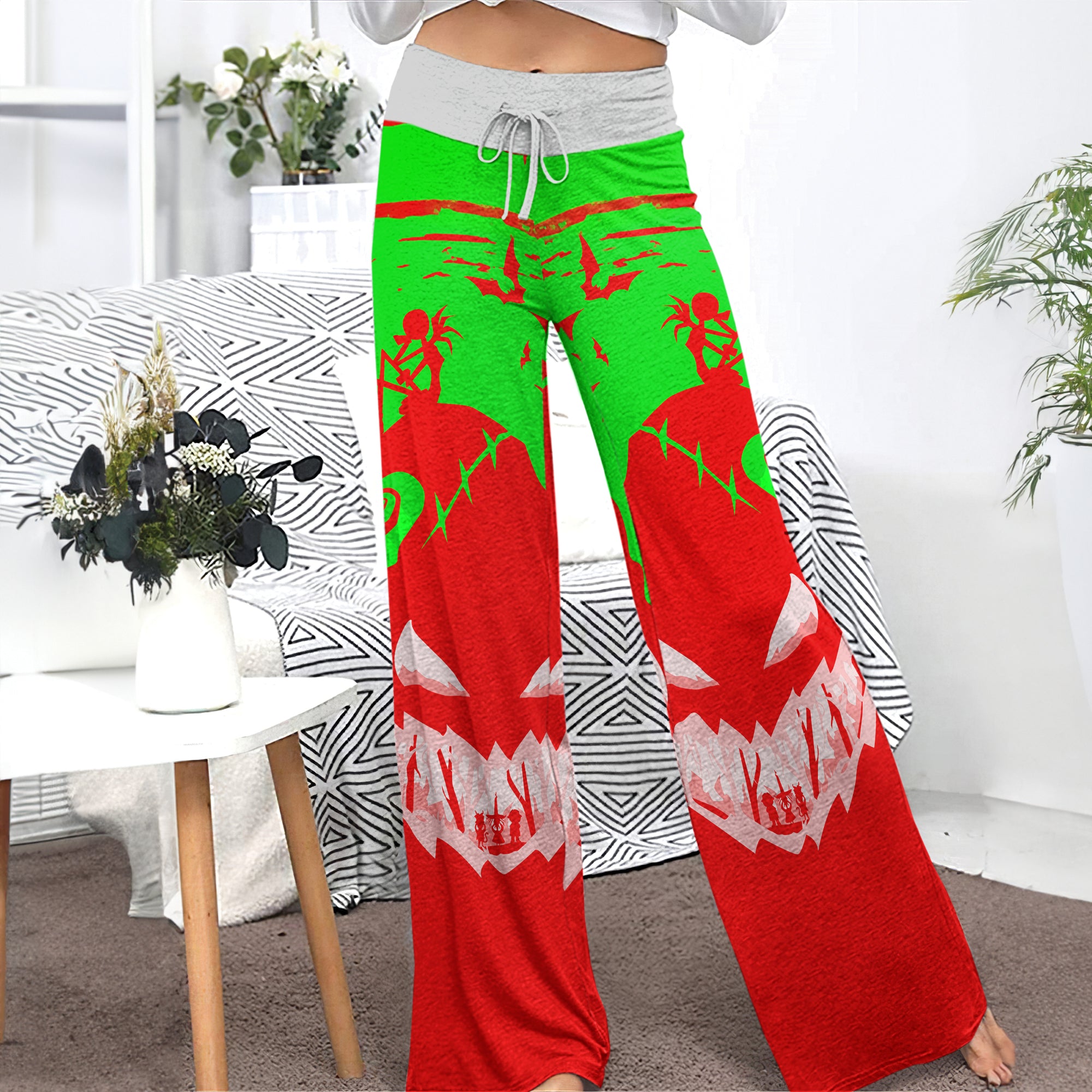 Green Red Nightmare Art Women's High-waisted Wide Leg Pants