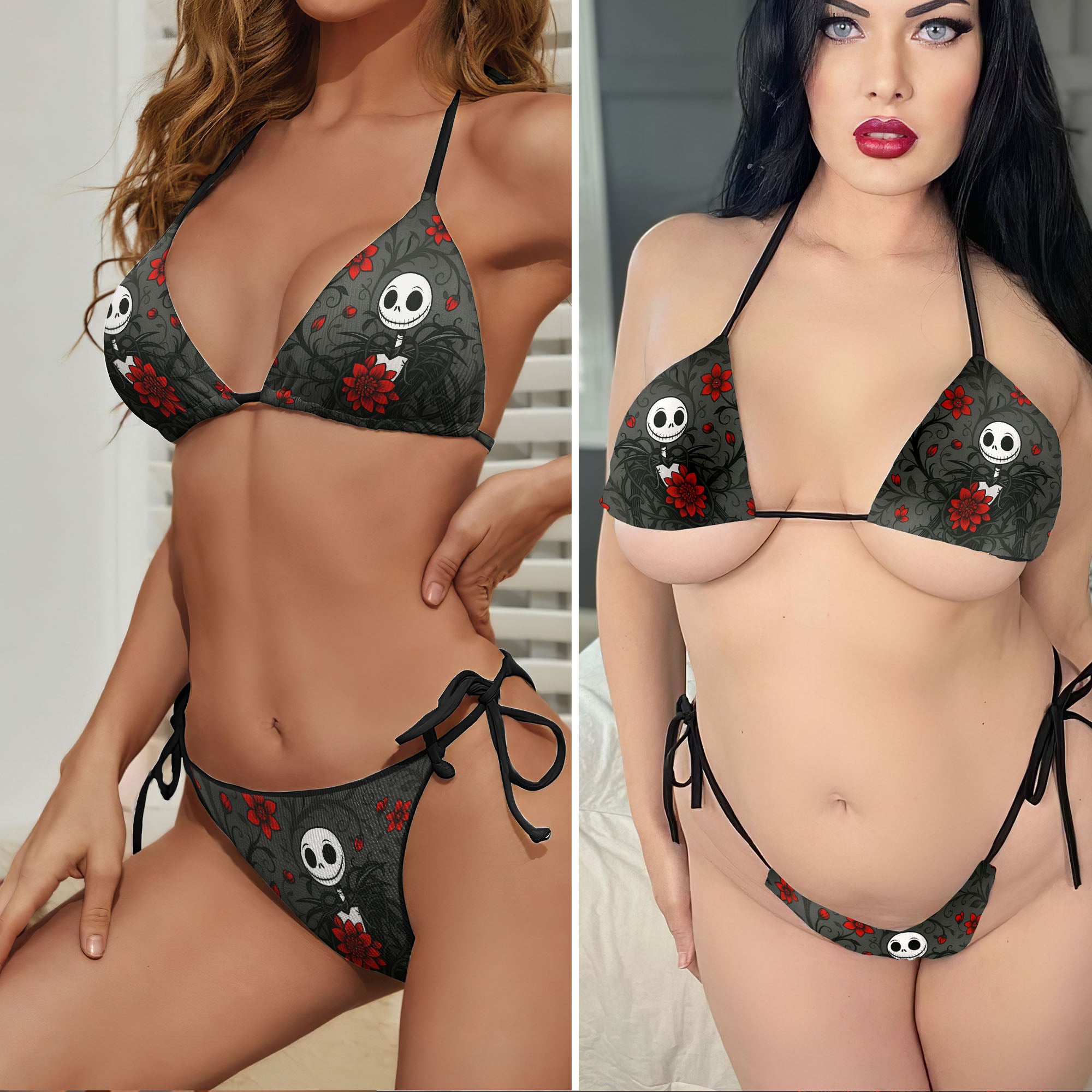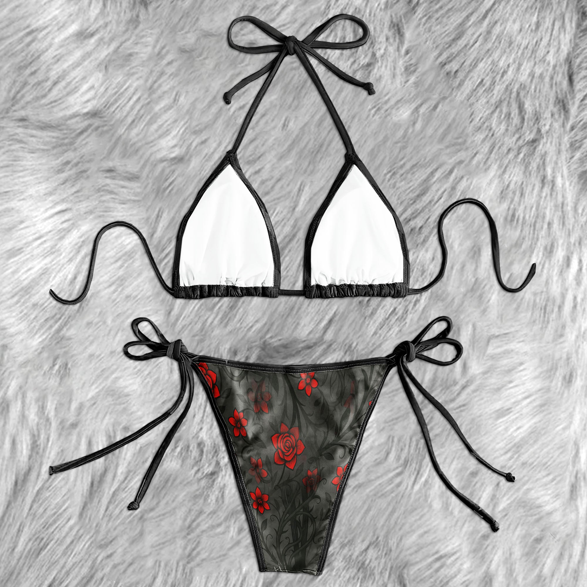 Grinning Red Bloom Micro Triangle Bikini Swimsuit