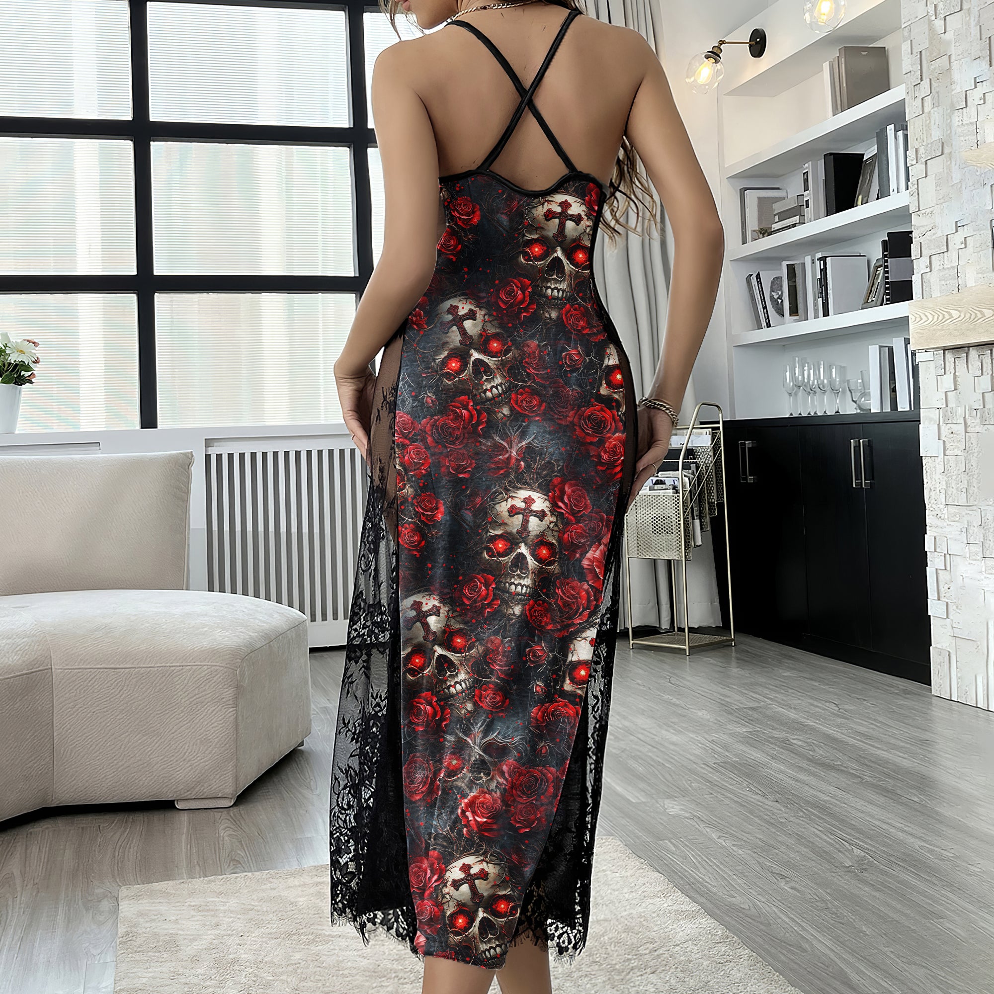 Honor Skull Rose Pattern Women's Lace Cami Sleepwear | Gothic, Punkrock, Lingerie for Women
