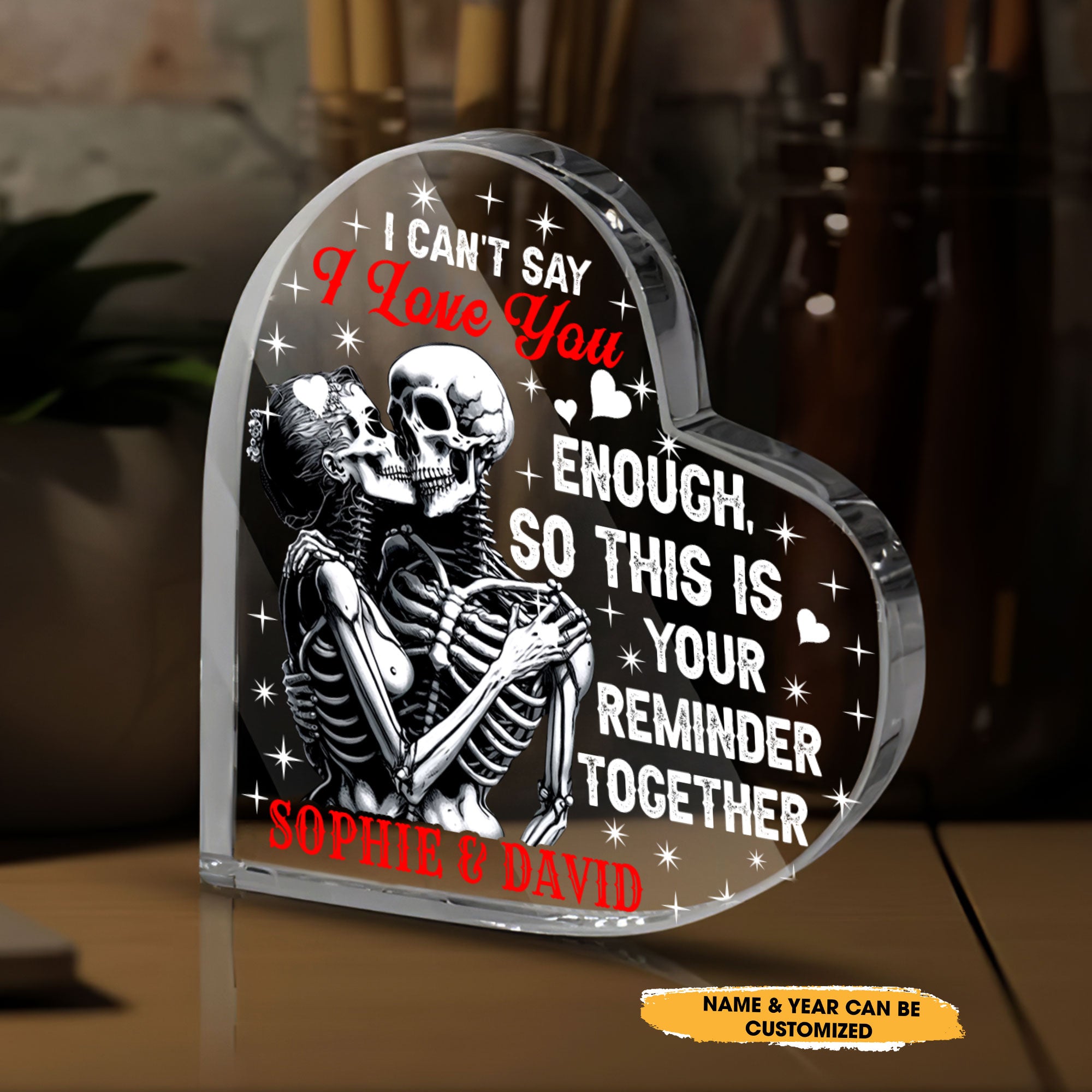 If you want to send your partner a gift that will last forever, then this is it. I Can't Say - Customized Skull Couple Crystal Heart Anniversary Gifts