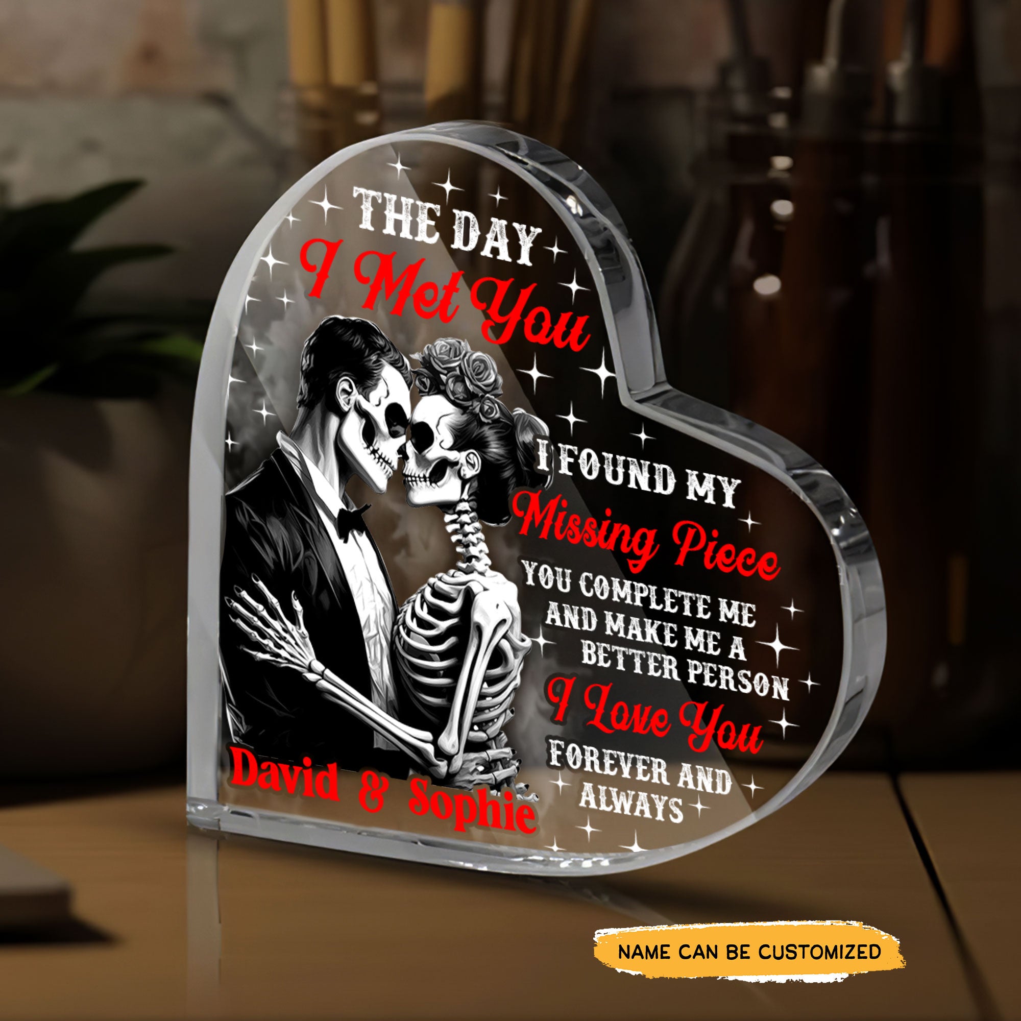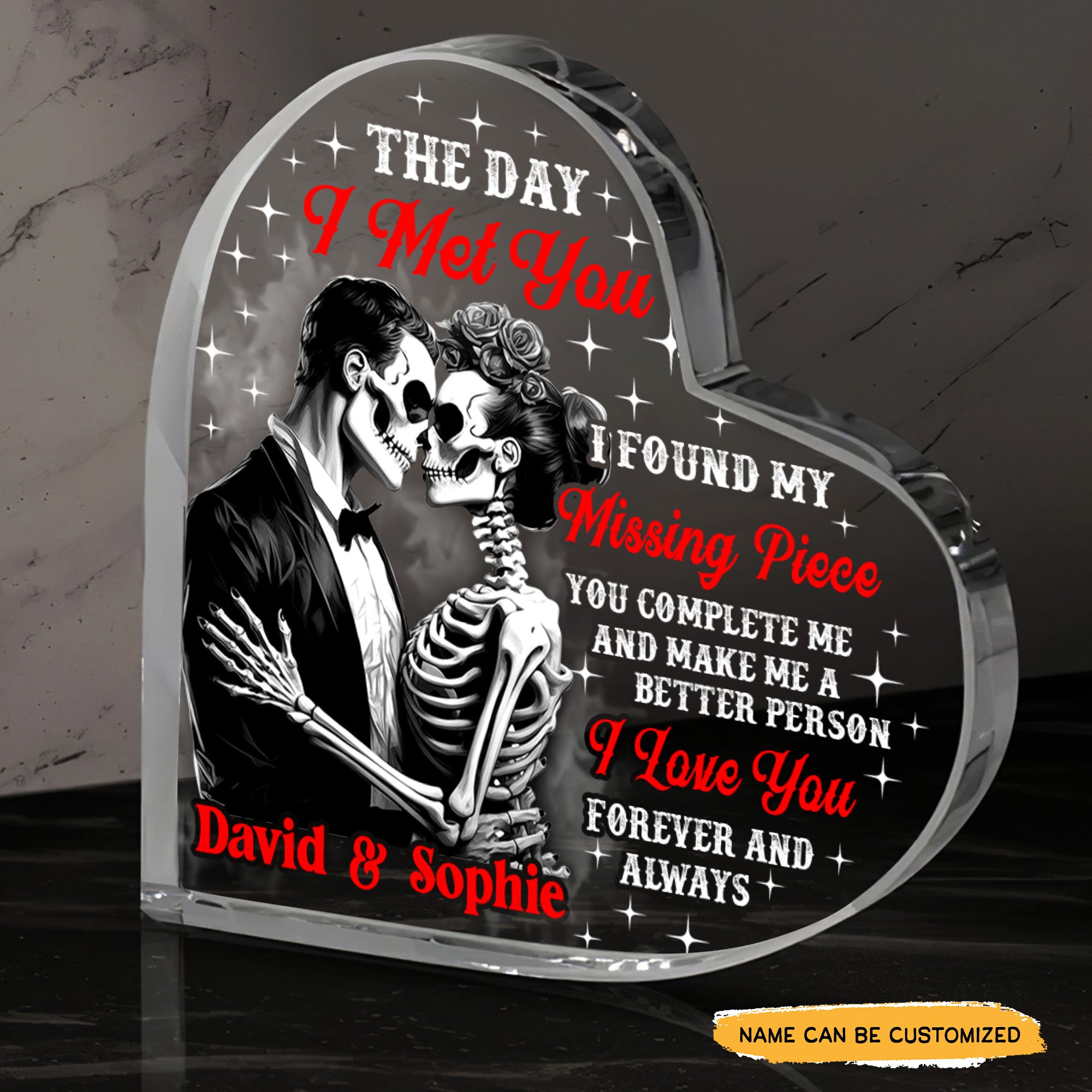 I Meet You - Customized Skull Couple Crystal Heart Gifts