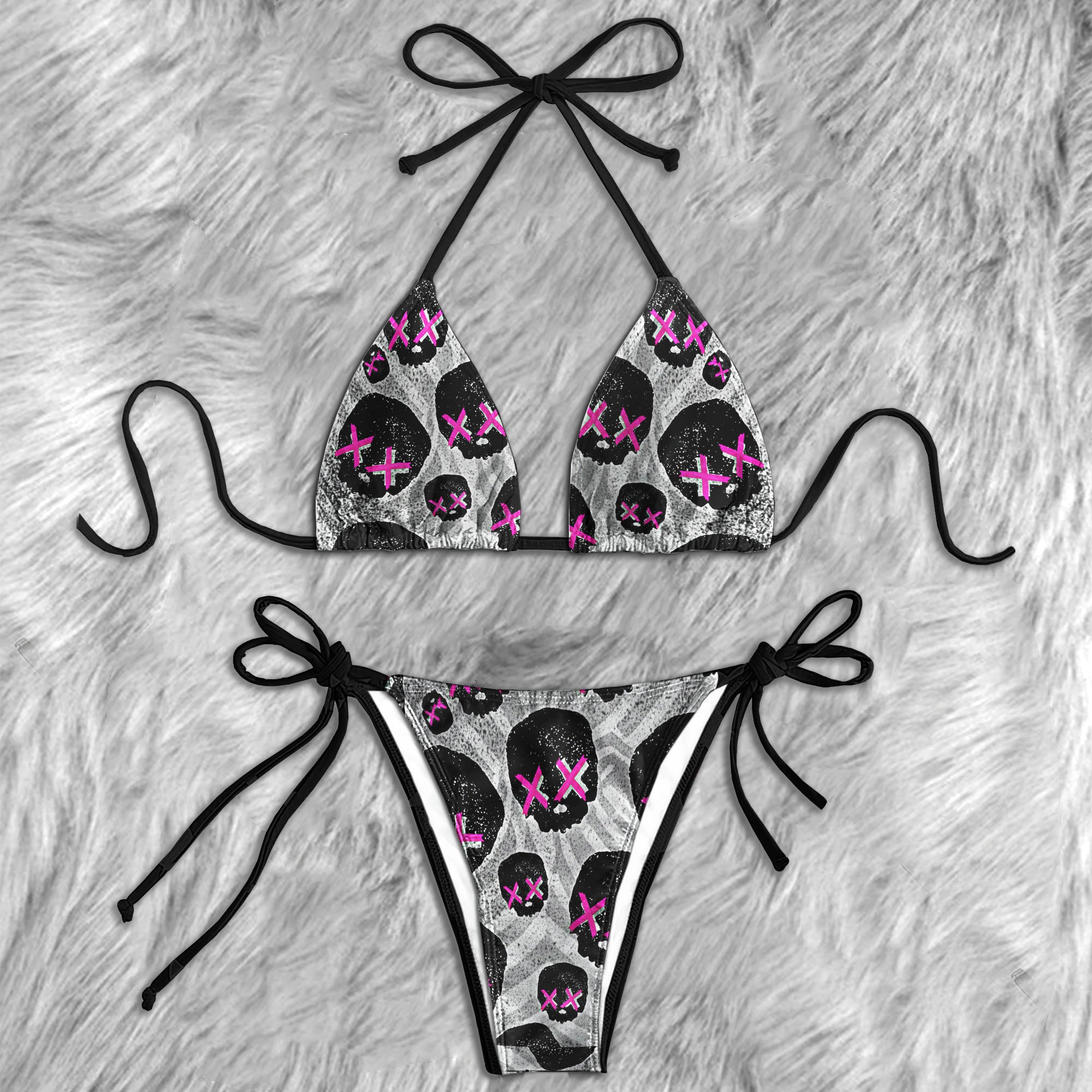 You can't handle this bikini. Neon Cross Eye Skull Micro Triangle Bikini Swimsuit