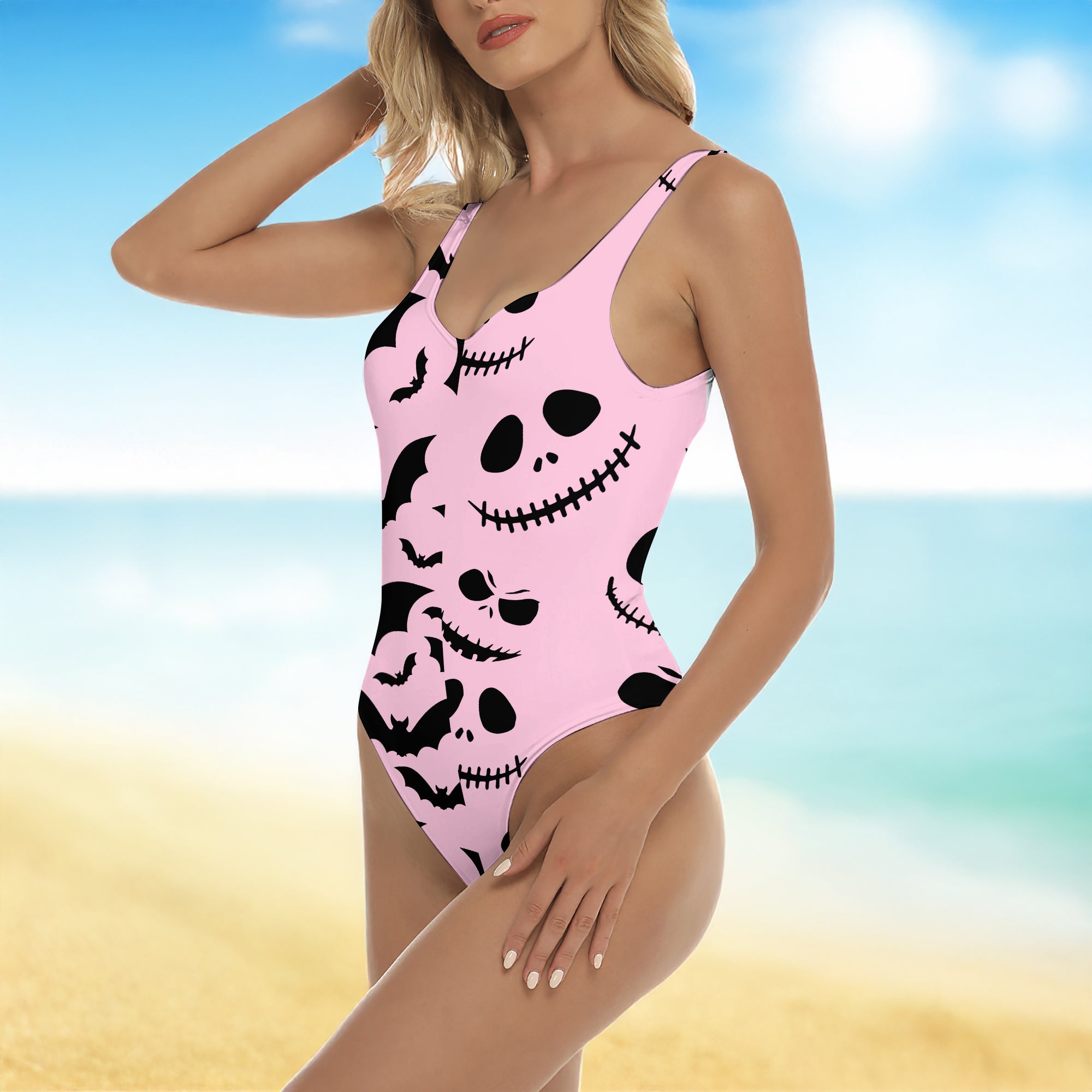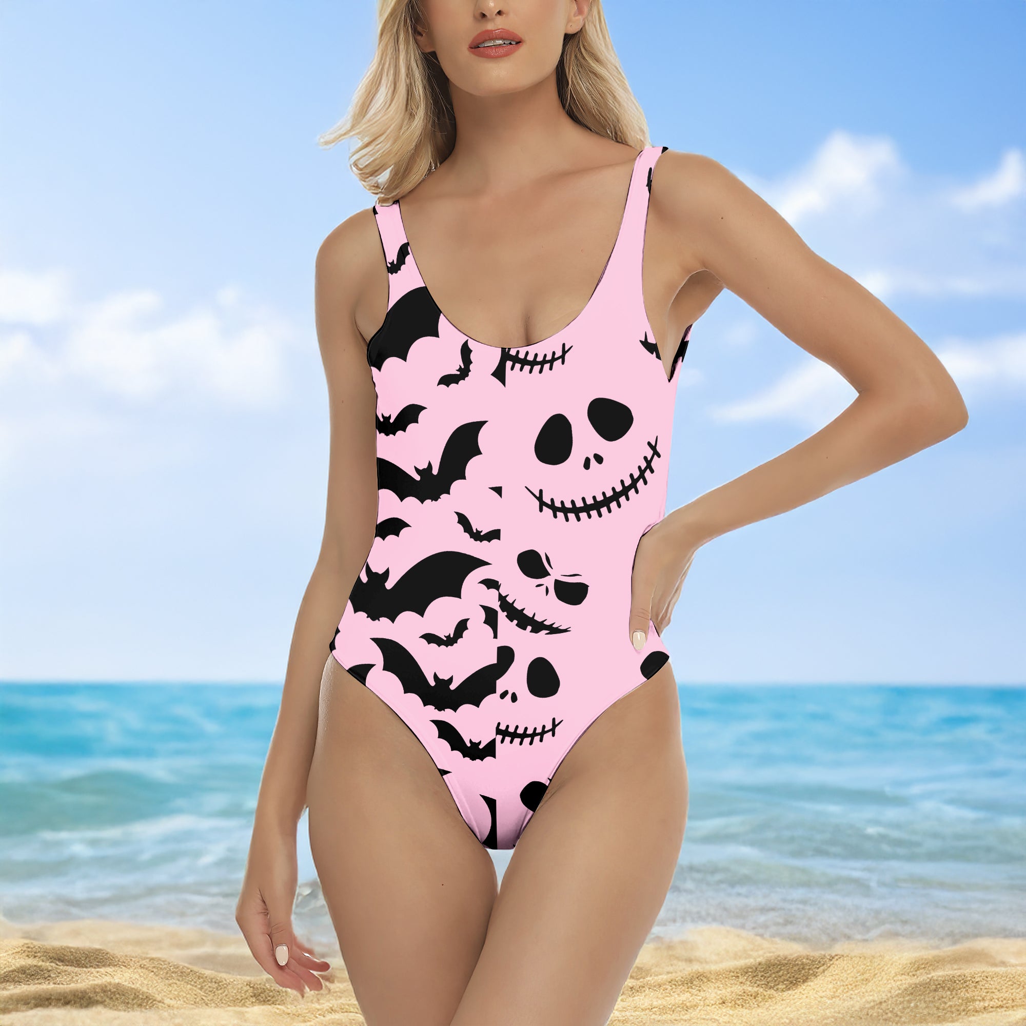 Get ready to shine in the sun with Wonder Skull One Piece Bikini Bubblegum Bats & Bones Print Swimwear. Perfect for the beach or poolside, this stylish one-piece swimsuit is designed to flatter all body types, offering a comfortable and confident fit. Featuring a full-color fantasy for the baddies who love a little chaos with their cuteness., this trendy swimwear adds a touch of elegance and charm, helping you stand out effortlessly. Made from soft, stretchy fabric, it provides all-day comfort and durability. Whether you're looking for a chic bikini for summer vacations or fashionable swimwear for lounging by the pool, this one-piece is a must-have for your wardrobe. Upgrade your swimwear collection today!