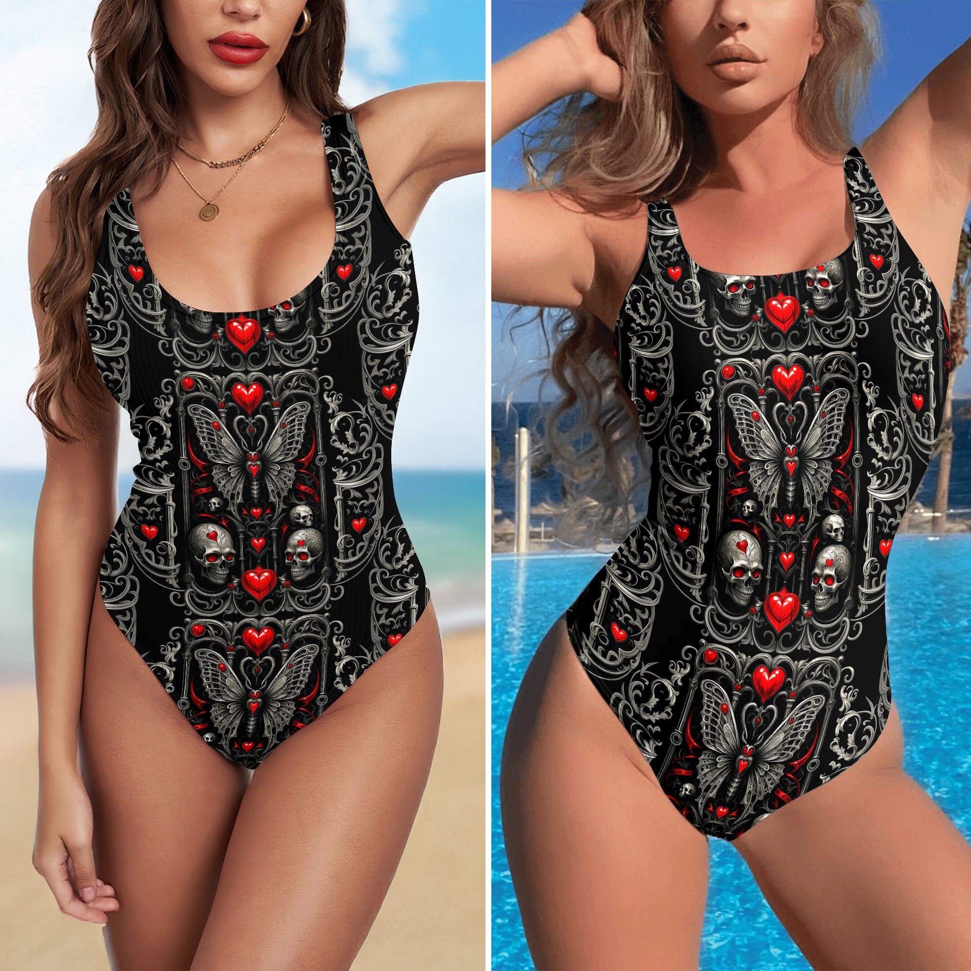 Get ready to shine in the sun with Wonder Skull One Piece Bikini Crimson Relic Skull Tapestry Print Swimwear. Perfect for the beach or poolside, this stylish one-piece swimsuit is designed to flatter all body types, offering a comfortable and confident fit. Featuring a pattern that feels like a stained-glass window in a vampire’s cathedral., this trendy swimwear adds a touch of elegance and charm, helping you stand out effortlessly. Made from soft, stretchy fabric, it provides all-day comfort and durability. Whether you're looking for a chic bikini for summer vacations or fashionable swimwear for lounging by the pool, this one-piece is a must-have for your wardrobe. Upgrade your swimwear collection today!