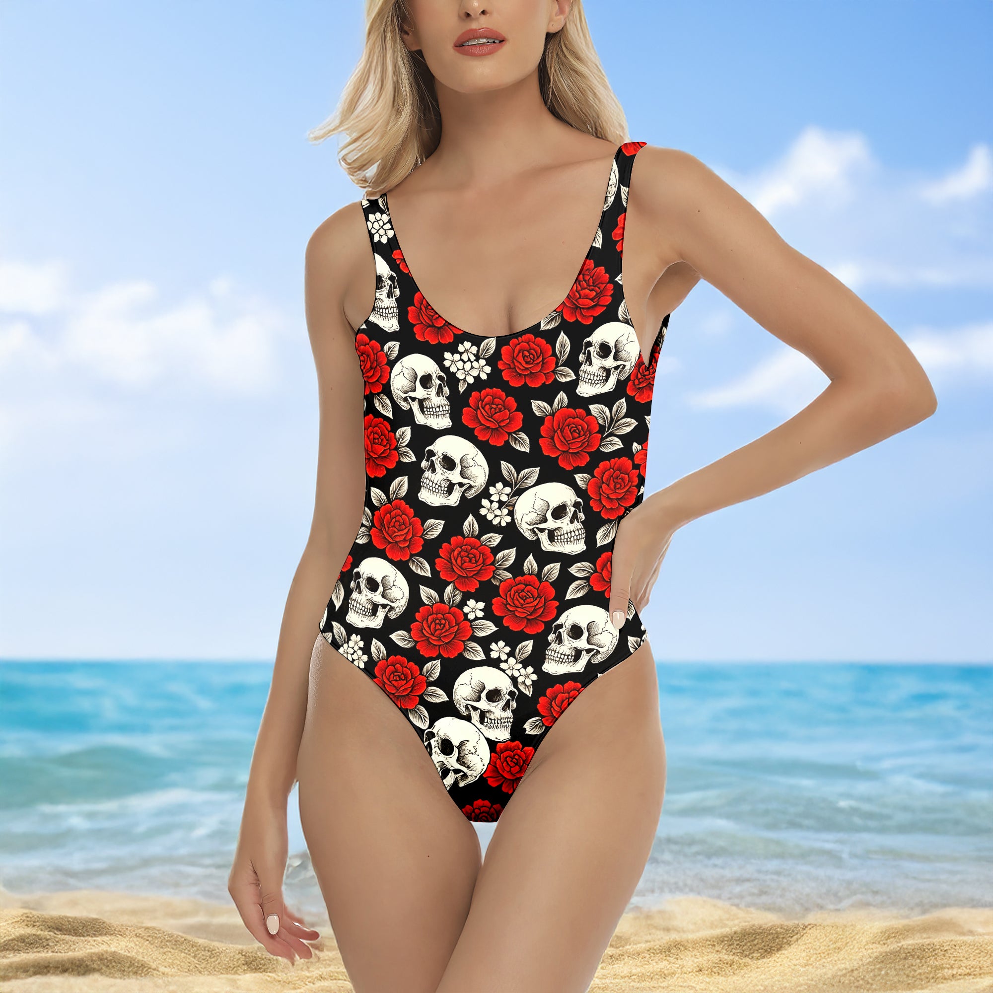 One Piece Bikini Ruby Skull Garden Print Swimwear