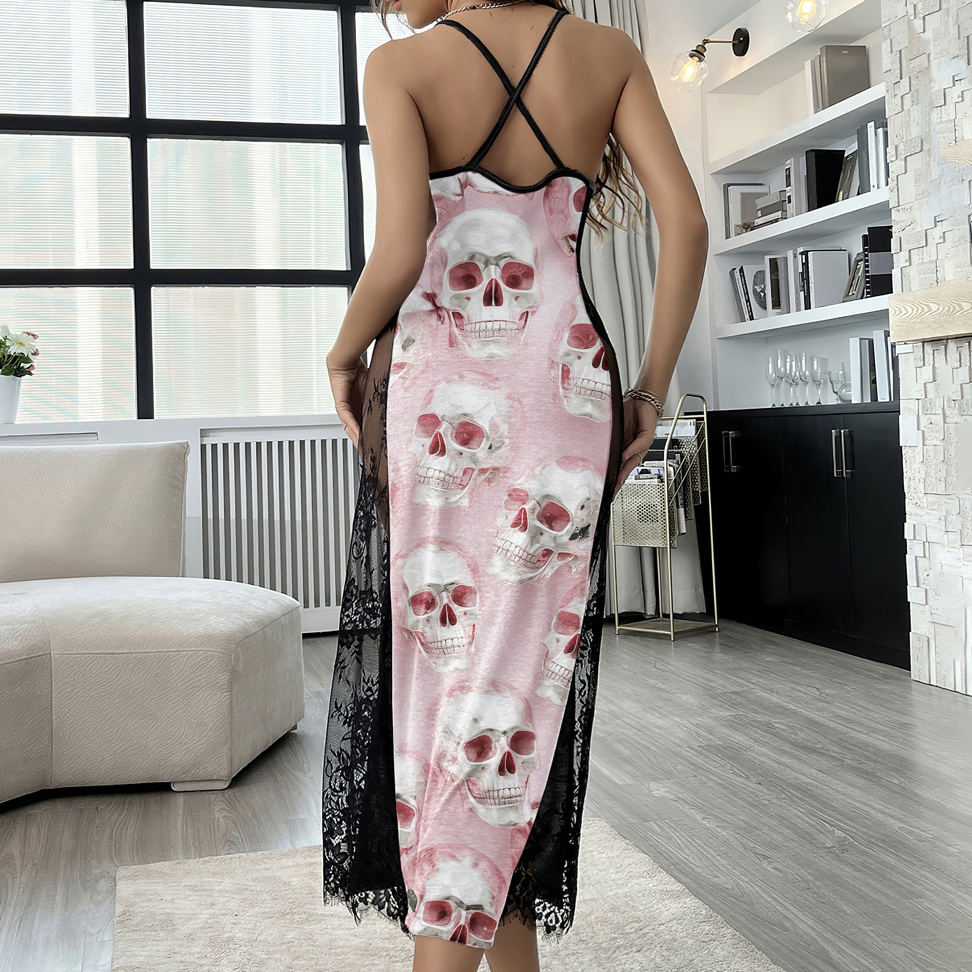 Pastel Metal Skull Pattern Women's Lace Cami Sleepwear