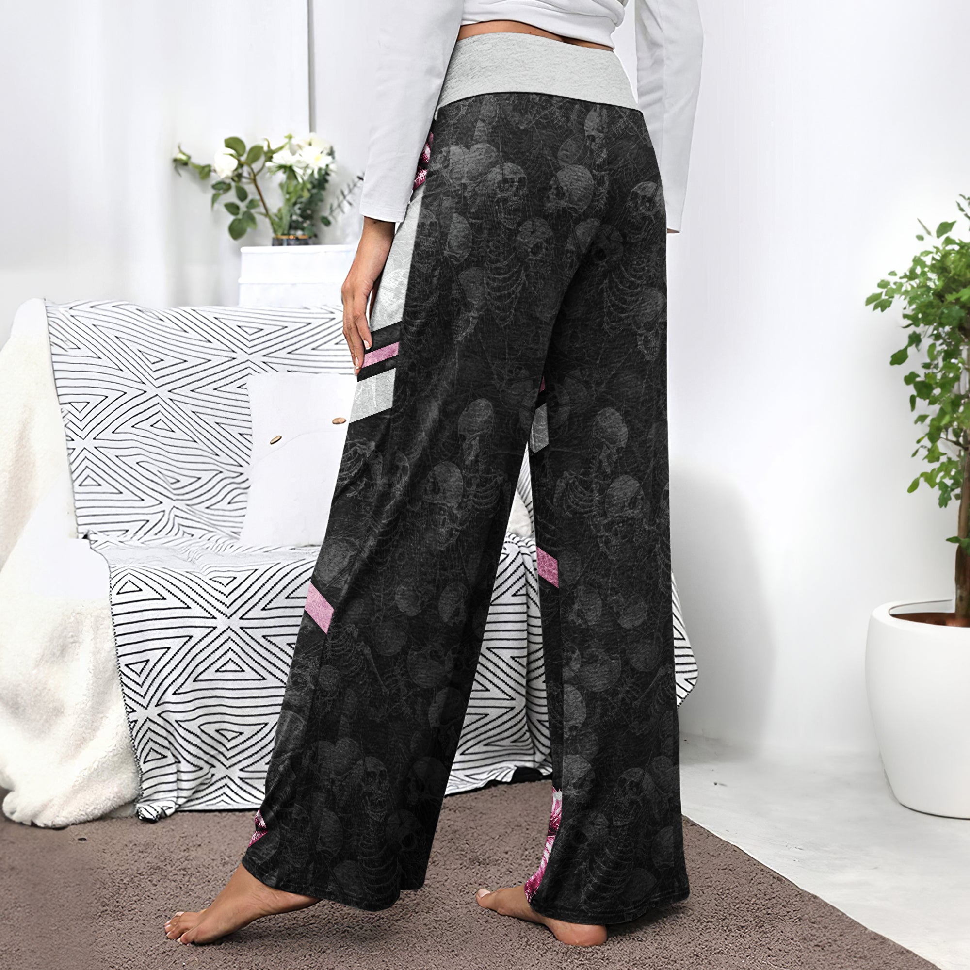 Pink Skull Lip Pattern Women's High-waisted Wide Leg Pants