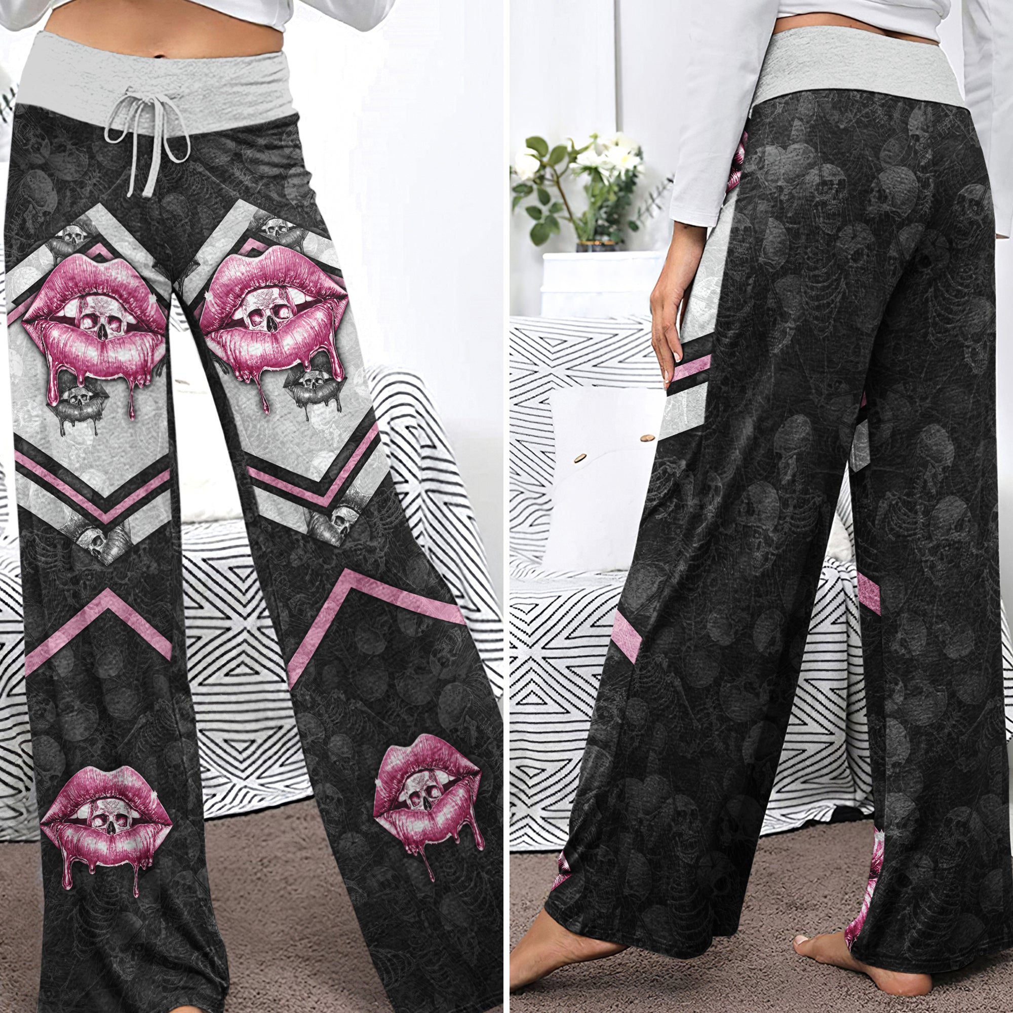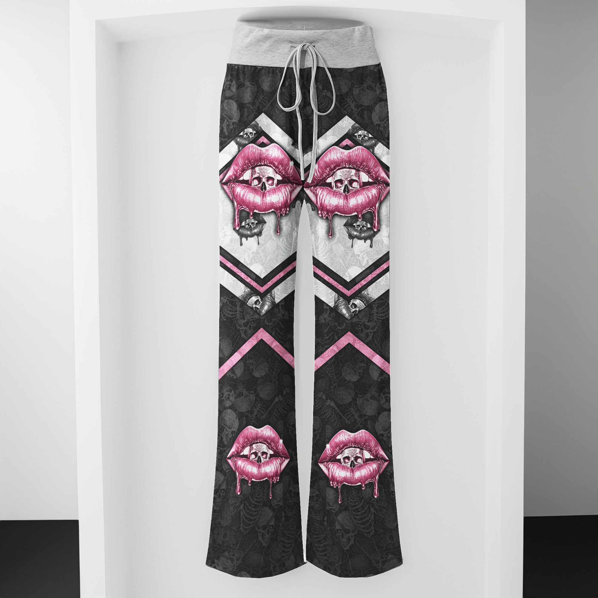 Pink Skull Lip Pattern Women's High-waisted Wide Leg Pants | Wonder Skull