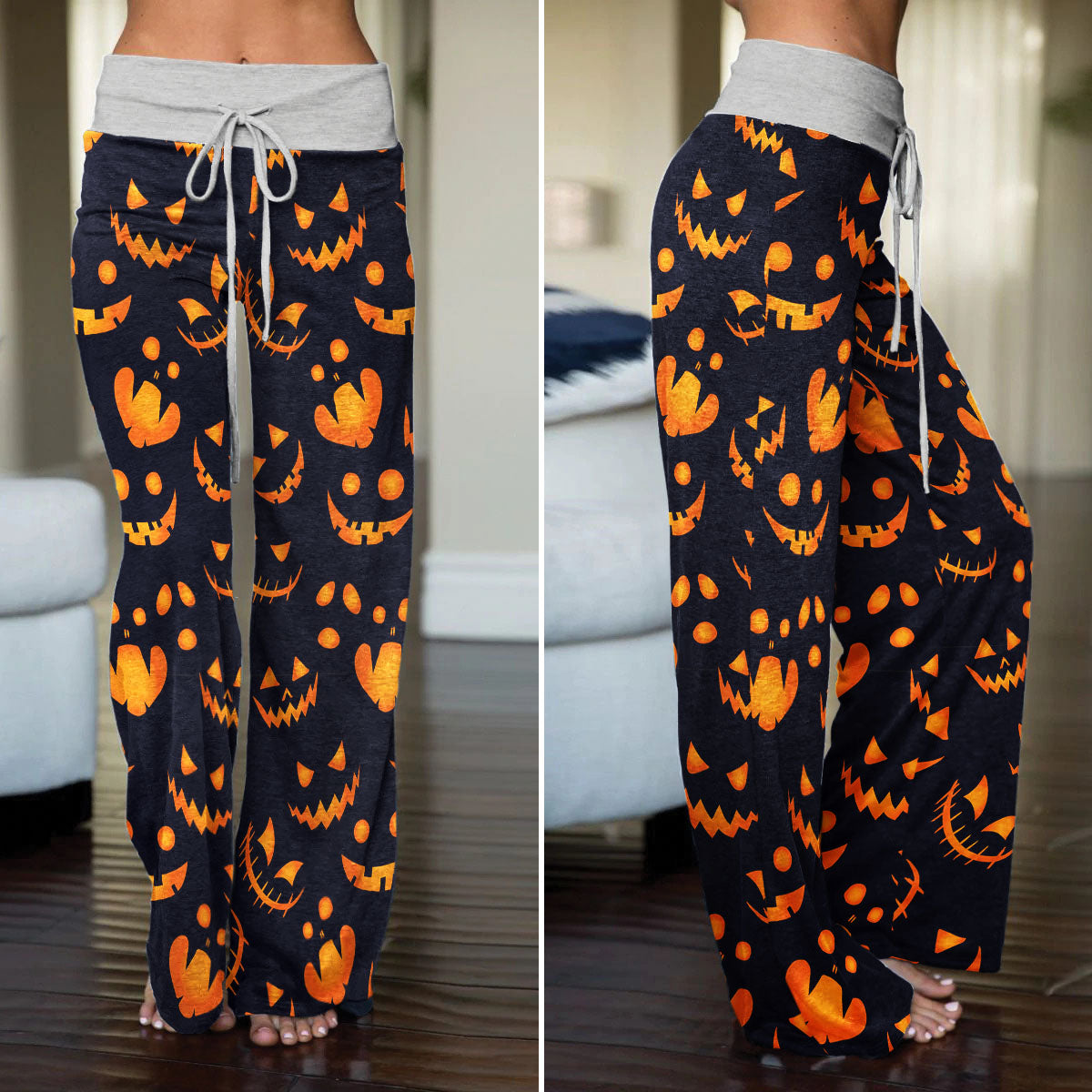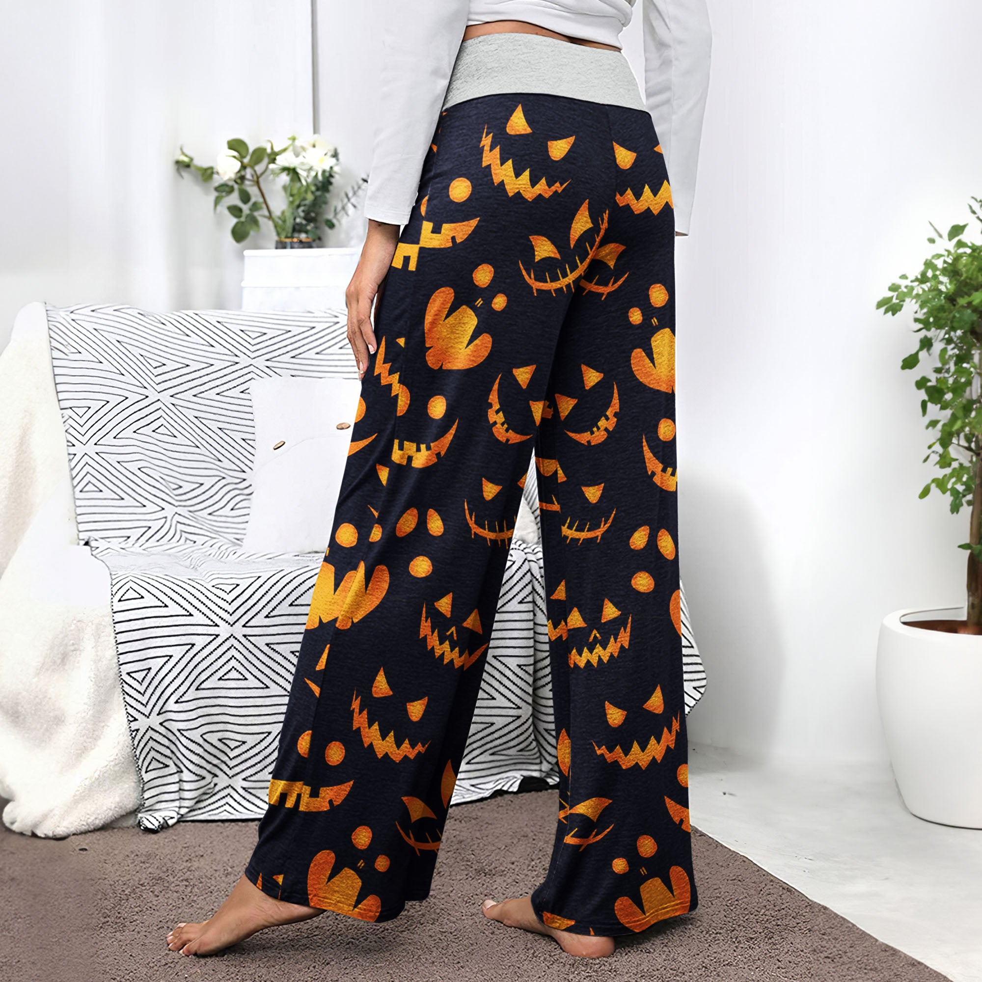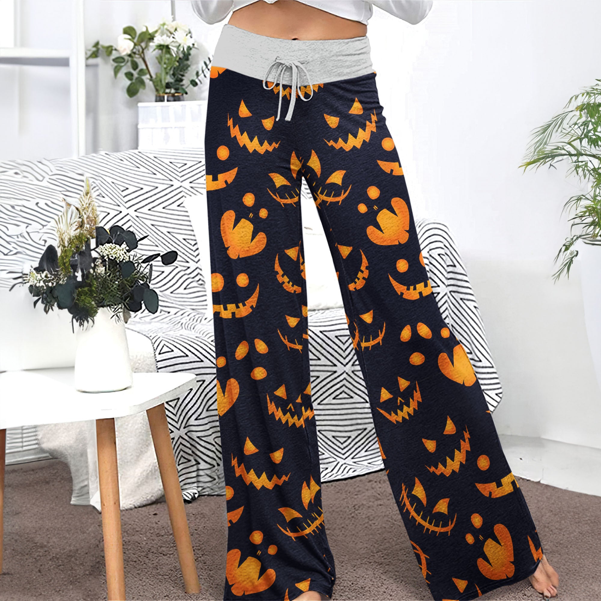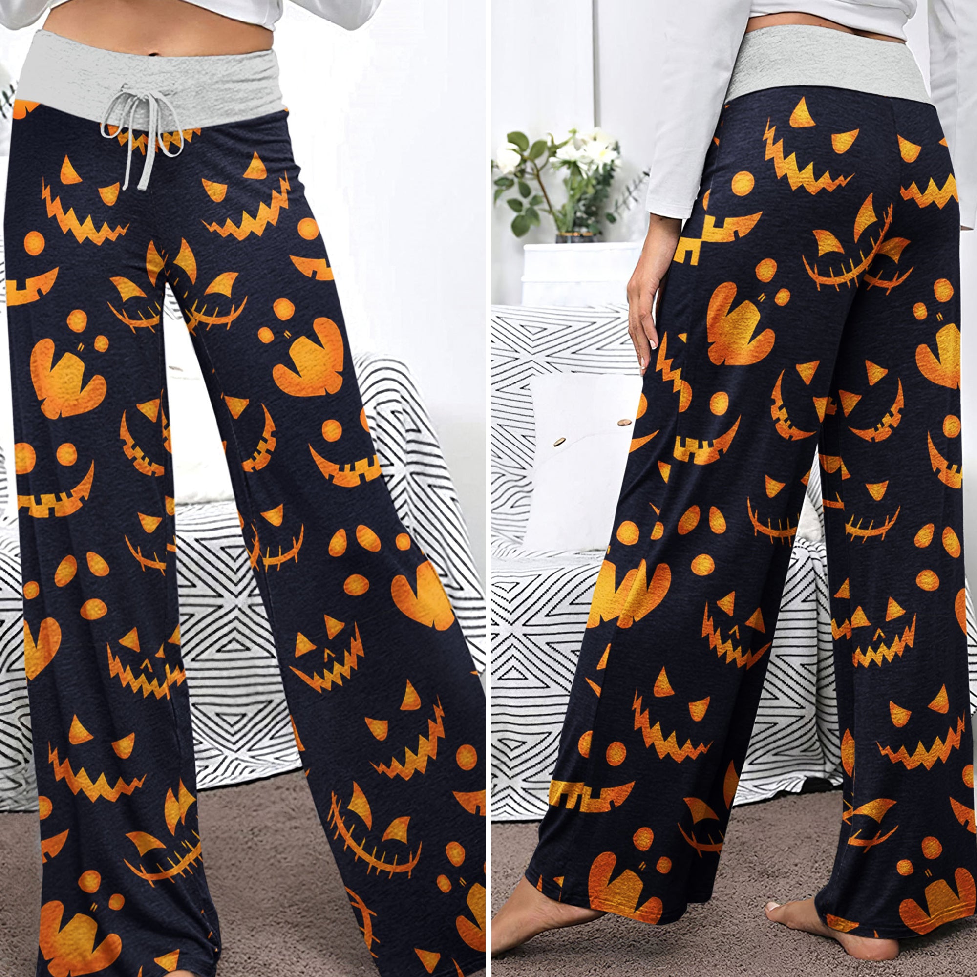Enjoy the comfort and quality of the Scary Halloween Pattern High-waisted Wide Leg Pants. Constructed from a premium lightweight fabric, it offers unlimited movement, along with a unique and stylish pattern. It features a wide waistband for a streamlined and flattering fit. Perfect for any occasion, these trousers provide the perfect blend of classic style and modern design.