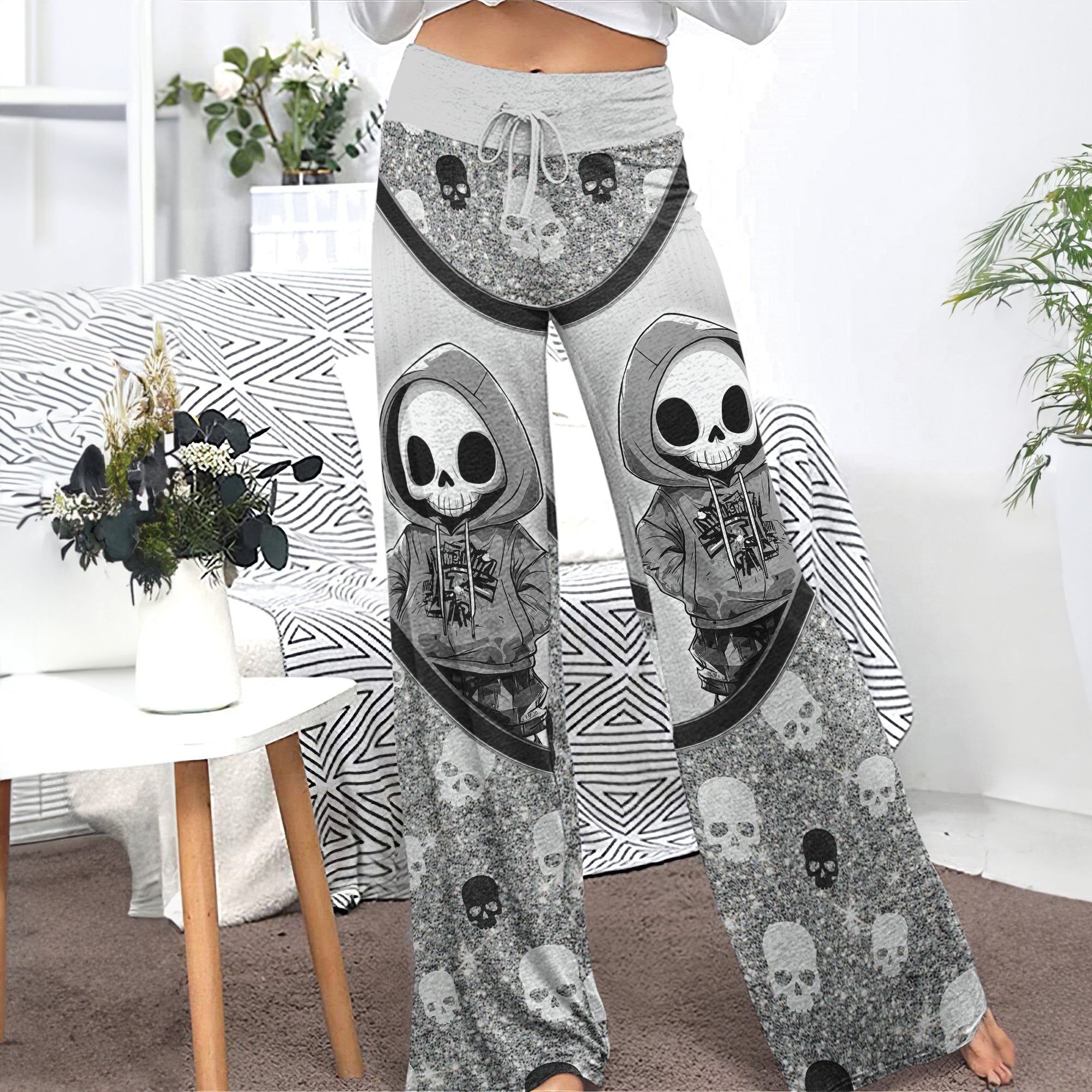 Skeleton Metal Glitter Art Women's High-waisted Wide Leg Pants