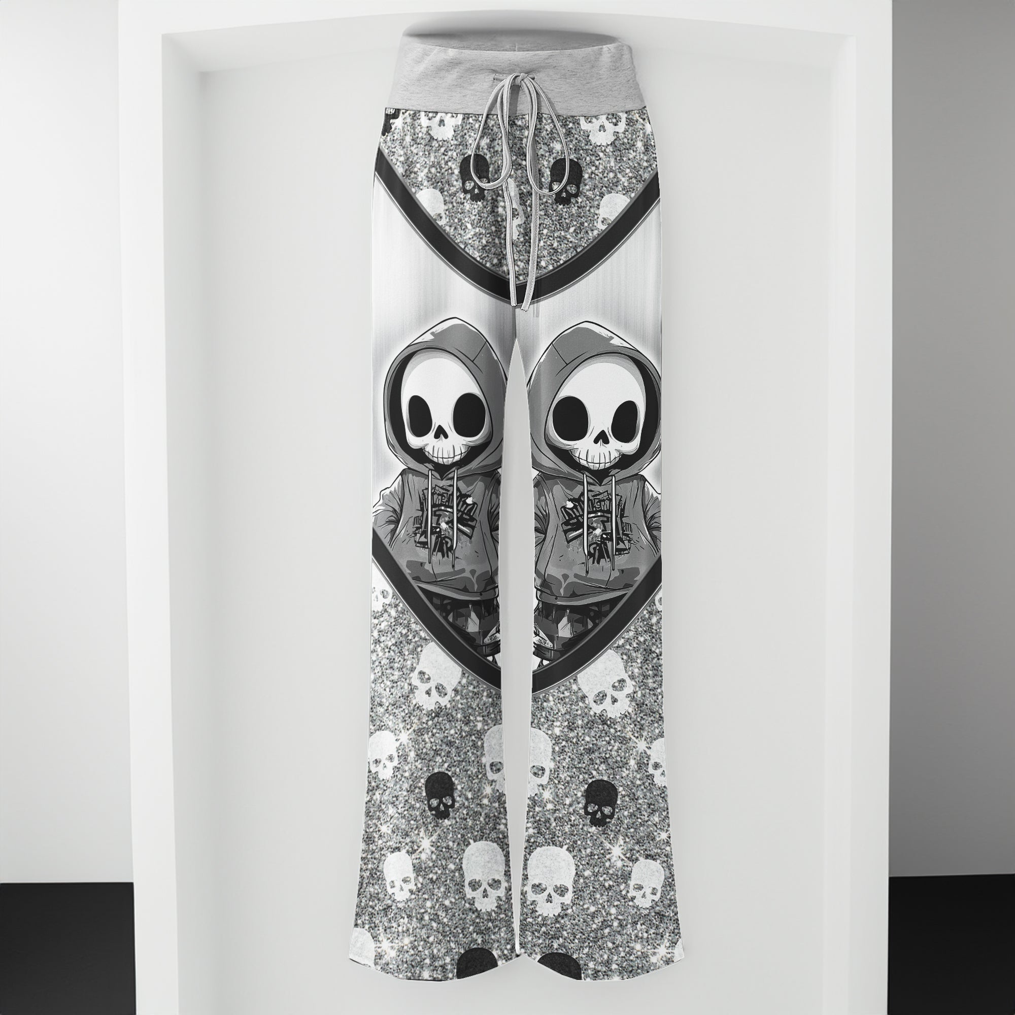 Skeleton Metal Glitter Art Women's High-waisted Wide Leg Pants | Wonder Skull