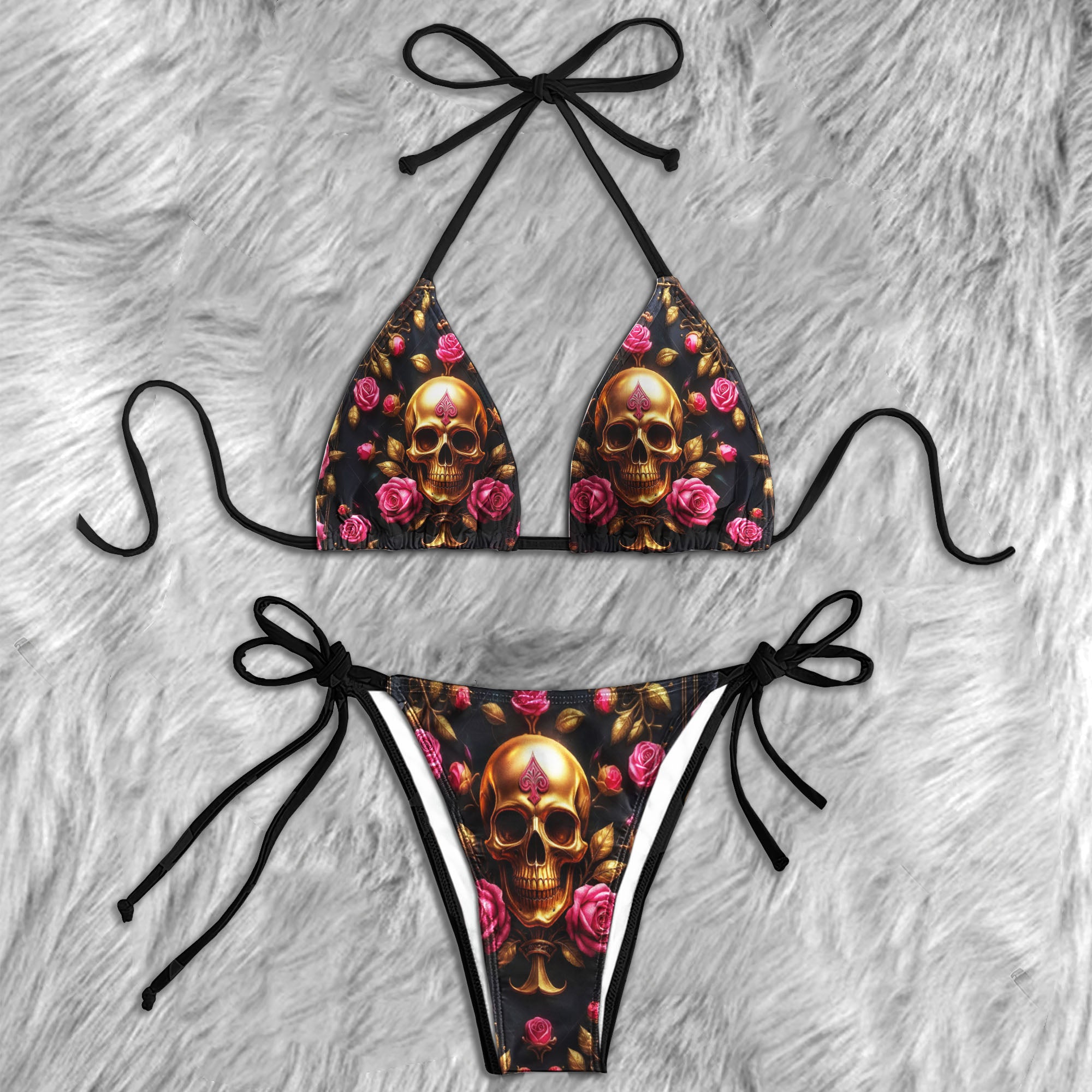 Skull Rose Luxury Gothic Micro Triangle Bikini Swimsuit