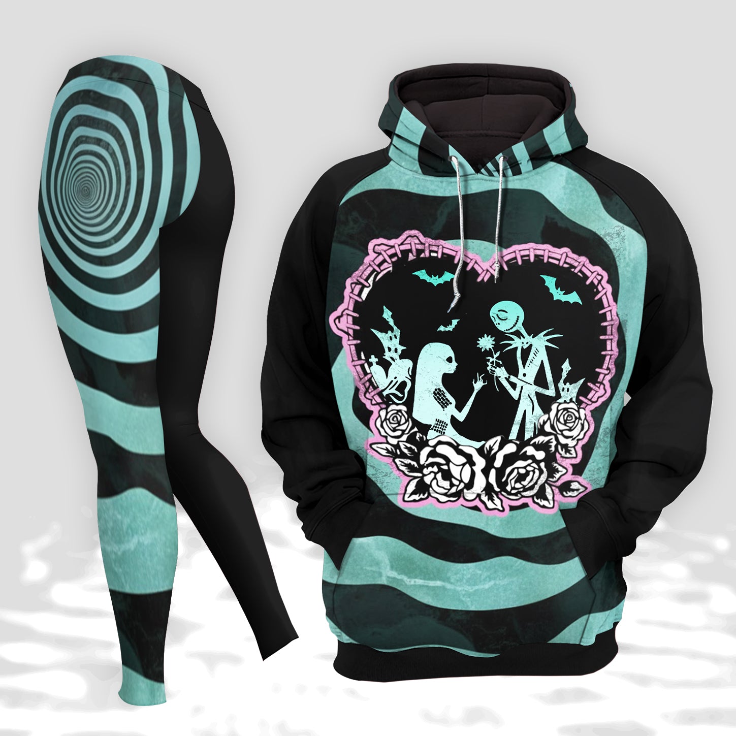 Women Hoodie and Leggings, Couple Skeleton Illusion Art Outwear Pants Outfit