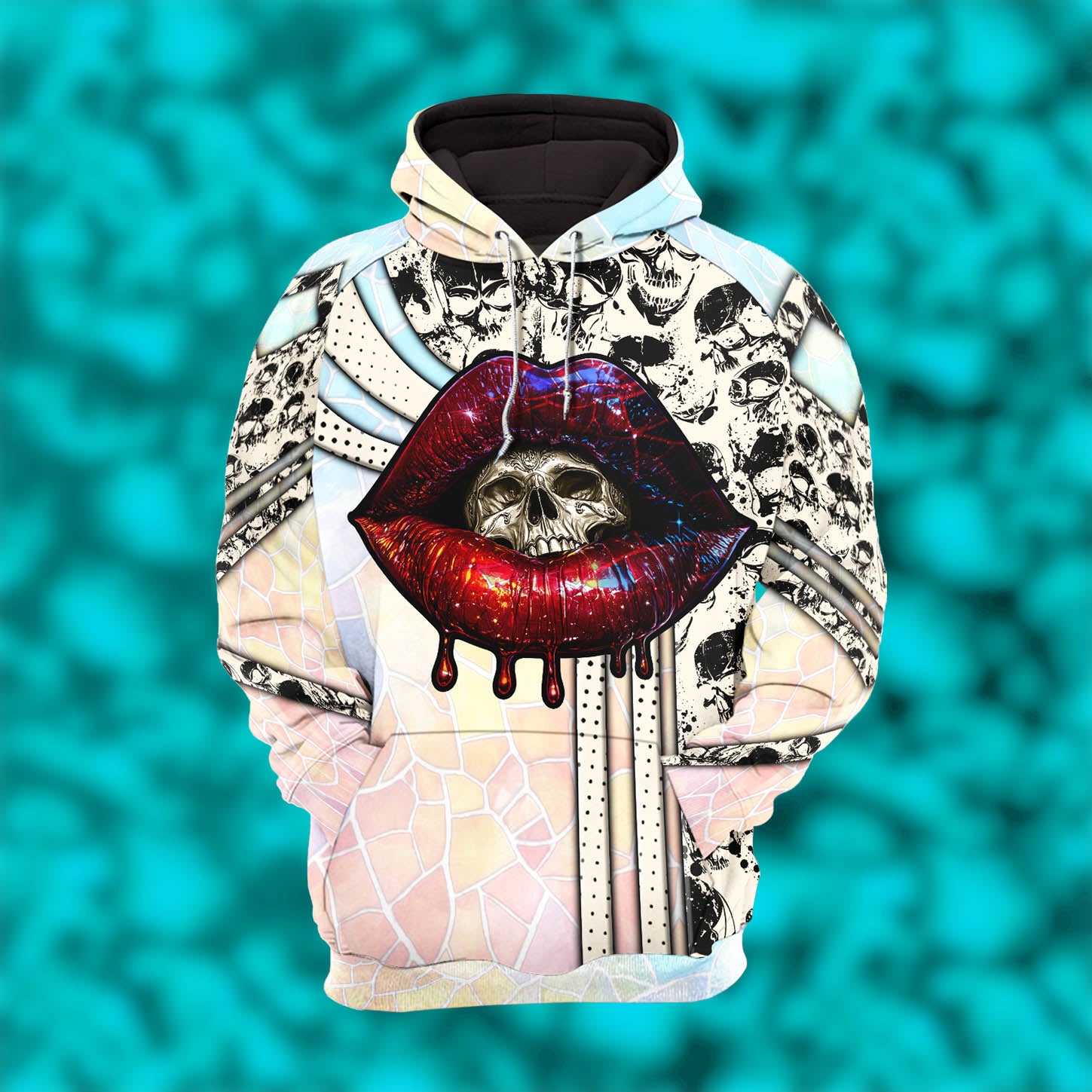 Pastel Skull Clip Art Combo Hoodie and Leggings - Dark and edgy matching set with skull designs for a unique and stylish look