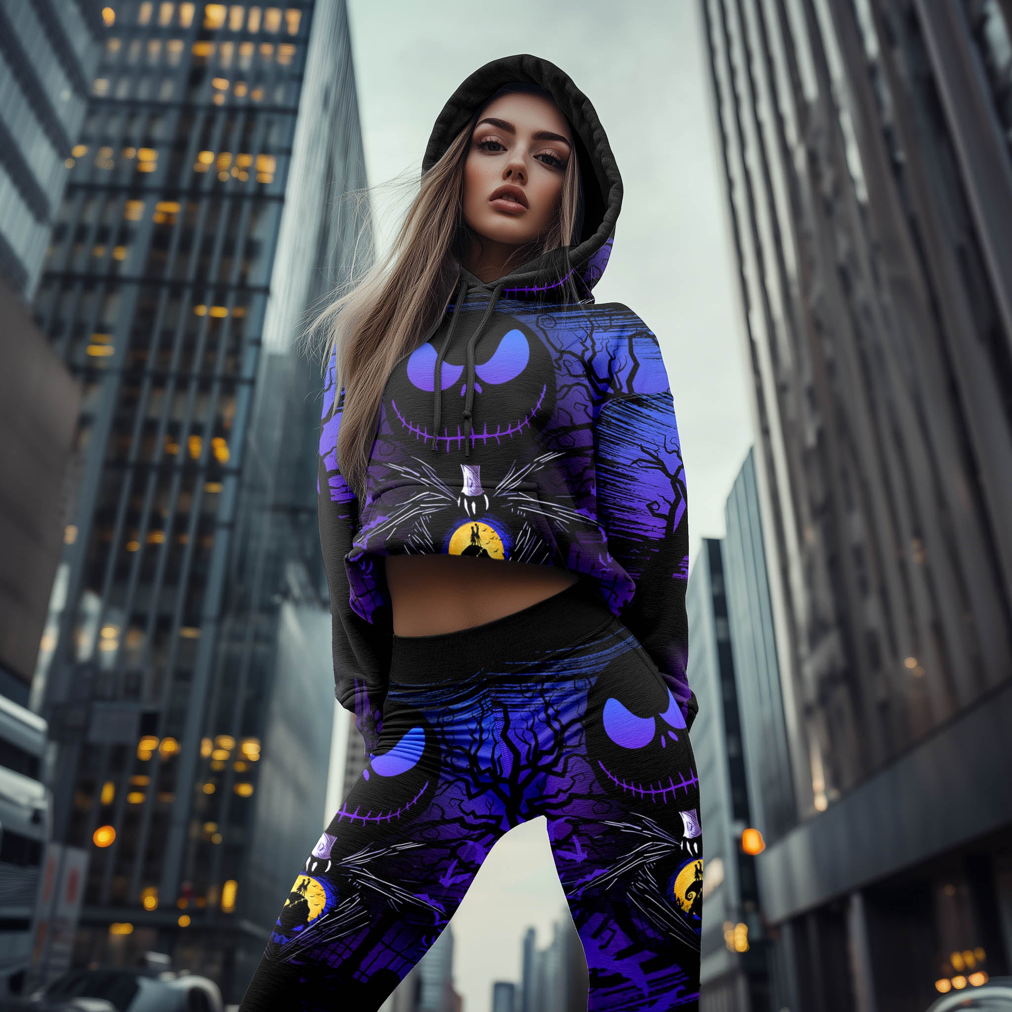 Purple Night Moon Combo Hoodie and Leggings - Dark and edgy matching set with skull designs for a unique and stylish look