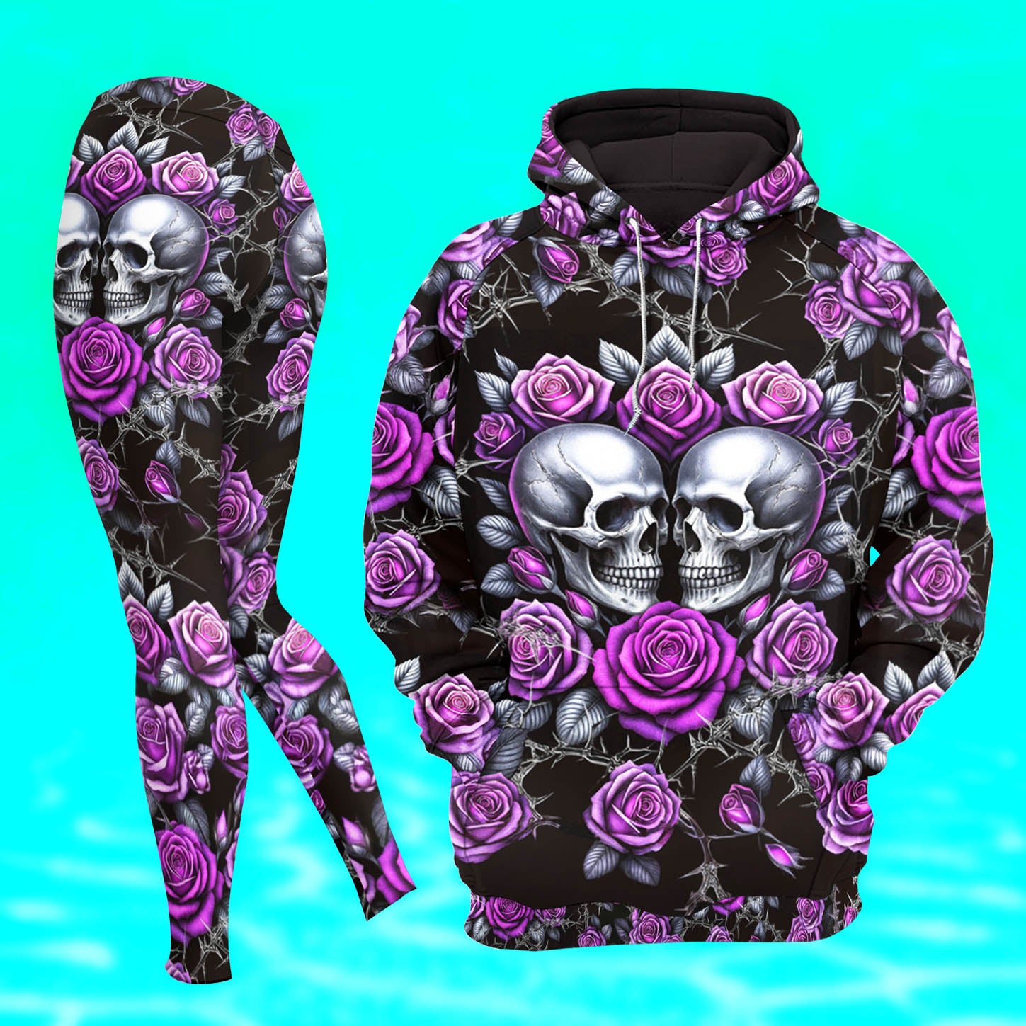 Women Hoodie and Leggings, Purple Thorns Skull Desire Outwear Pants Outfit