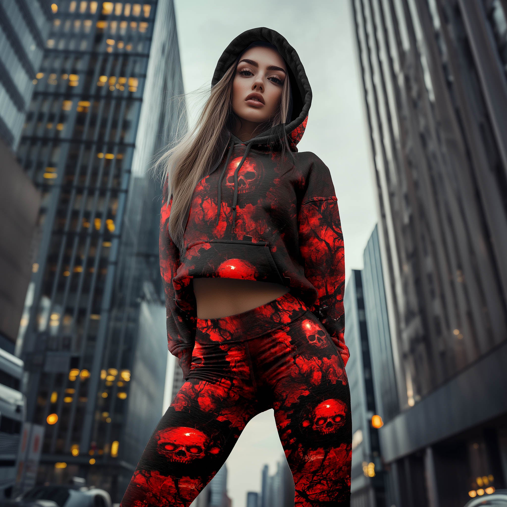 Red Skull Grunge Combo Hoodie and Leggings - Dark and edgy matching set with skull designs for a unique and stylish look