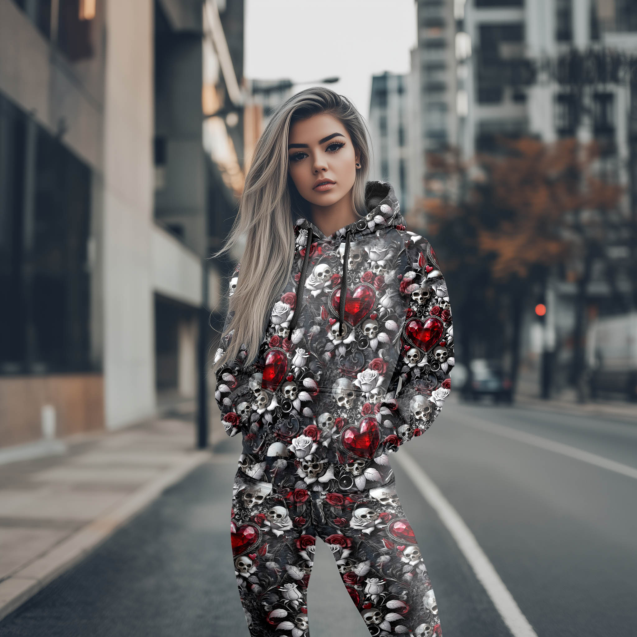 Skull Rose Diamond Combo Hoodie and Leggings - Dark and edgy matching set with skull designs for a unique and stylish look