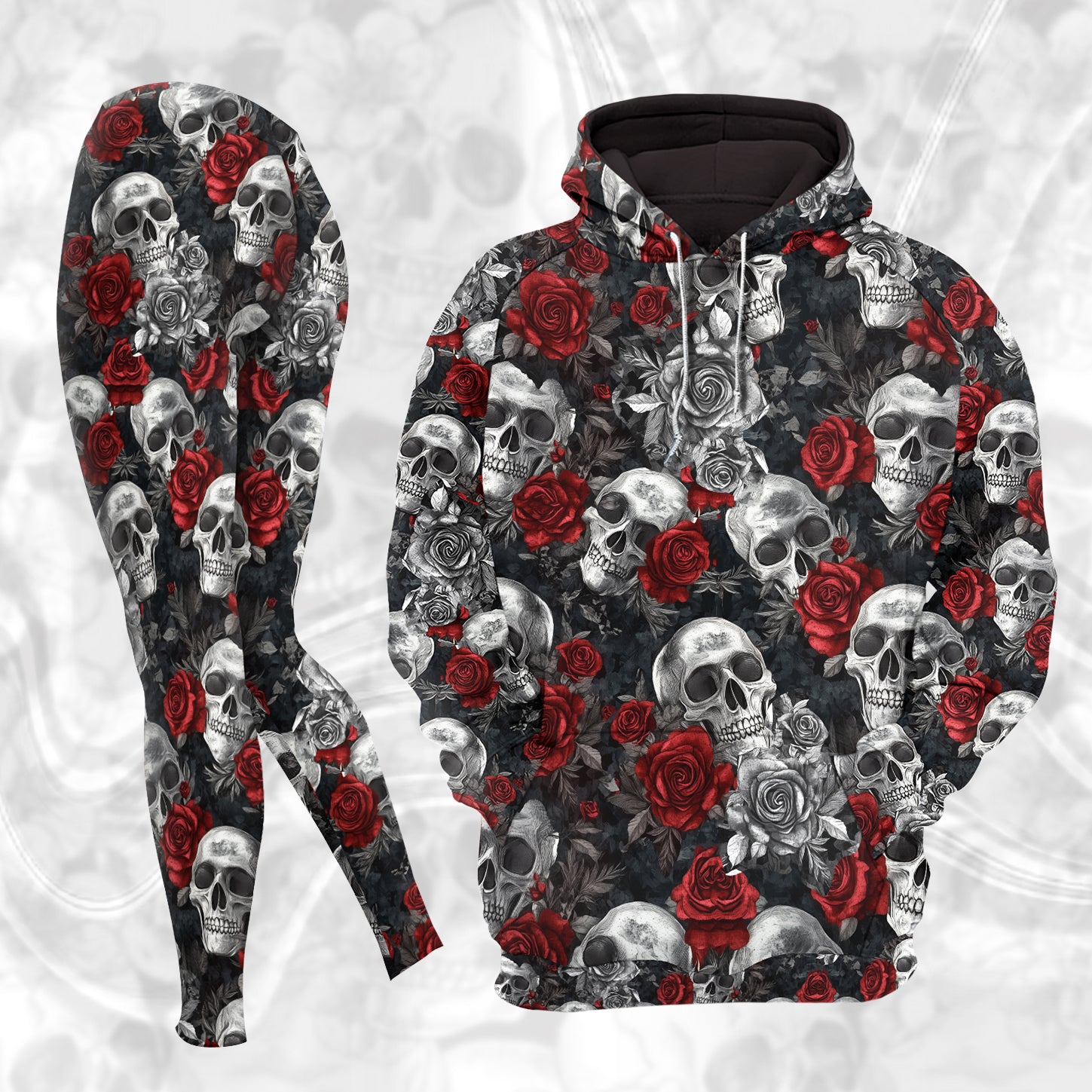 Skull Rose Gothic Pattern Combo Hoodie and Leggings - Dark and edgy matching set with skull designs for a unique and stylish look