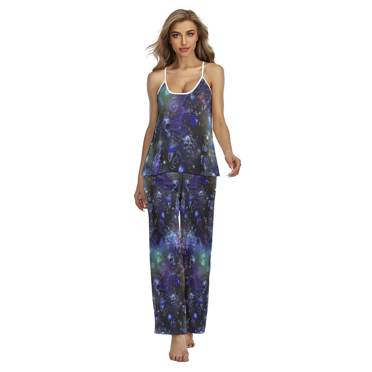 Abstract Purple Skull Cami Pajamas Sets For Women Sleepwears Combo - Wonder Skull