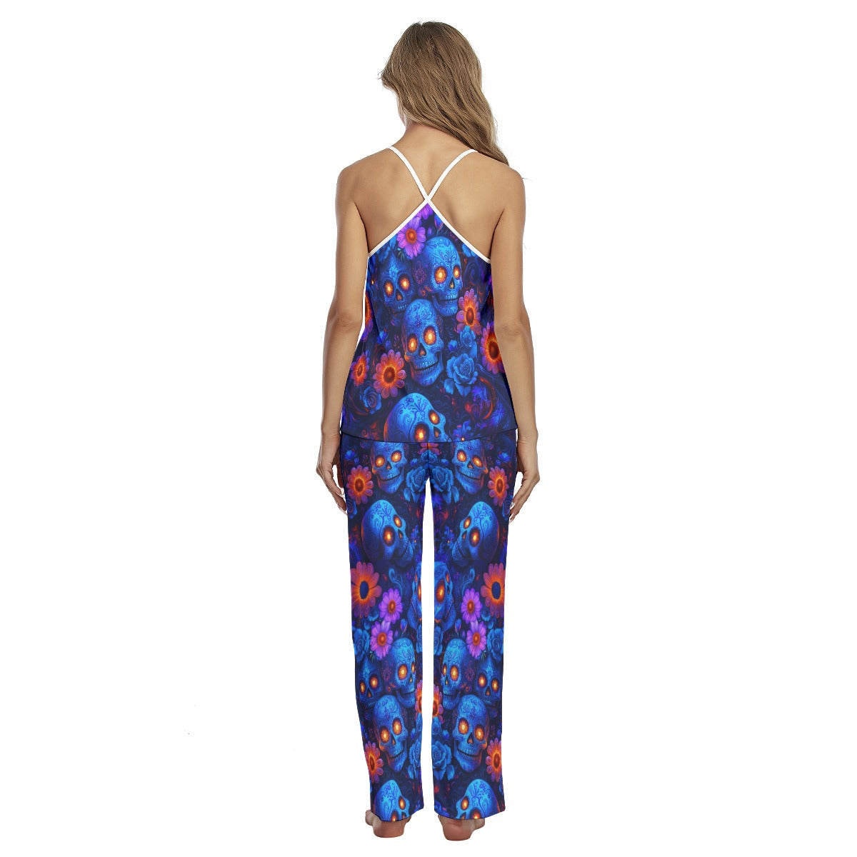 Blue Skull Pattern Cami Pajamas Sets For Women Sleepwears Combo - Wonder Skull