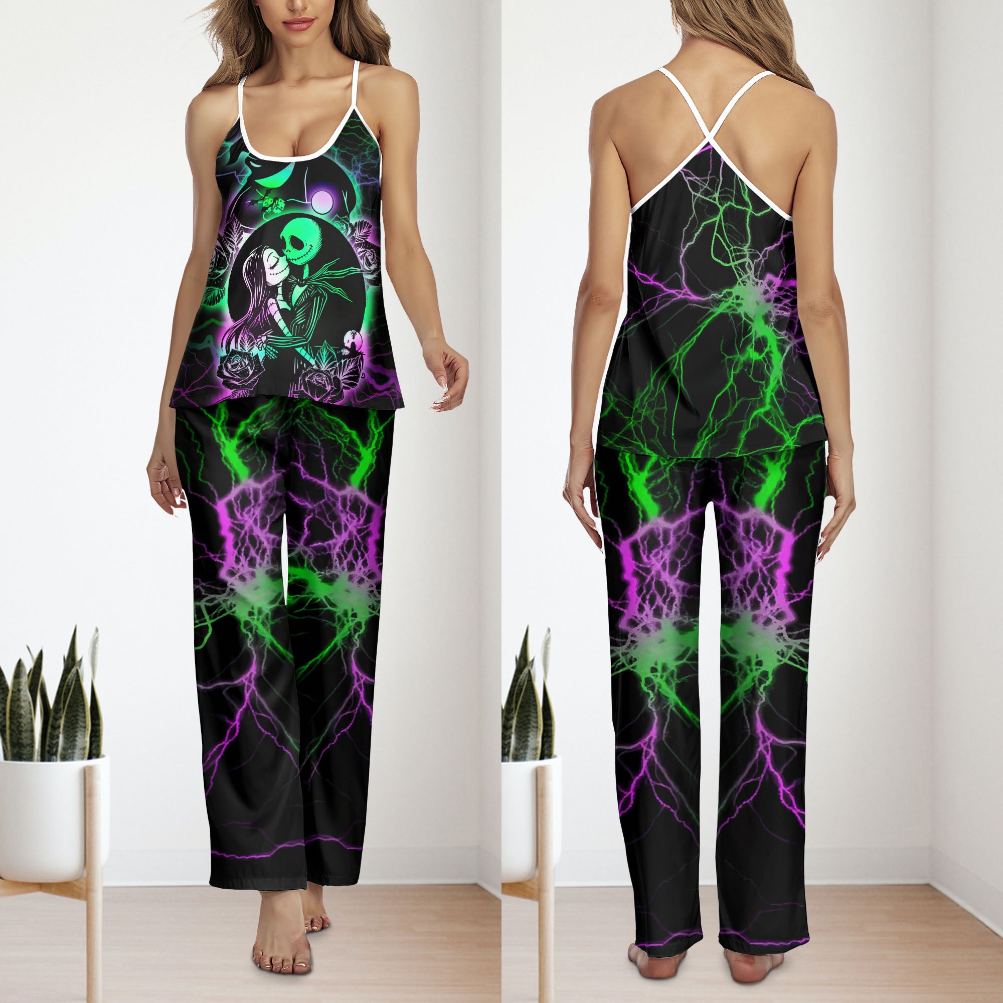 Green Couple Art Cami Pajamas Sets For Women Sleepwears Combo - Wonder Skull