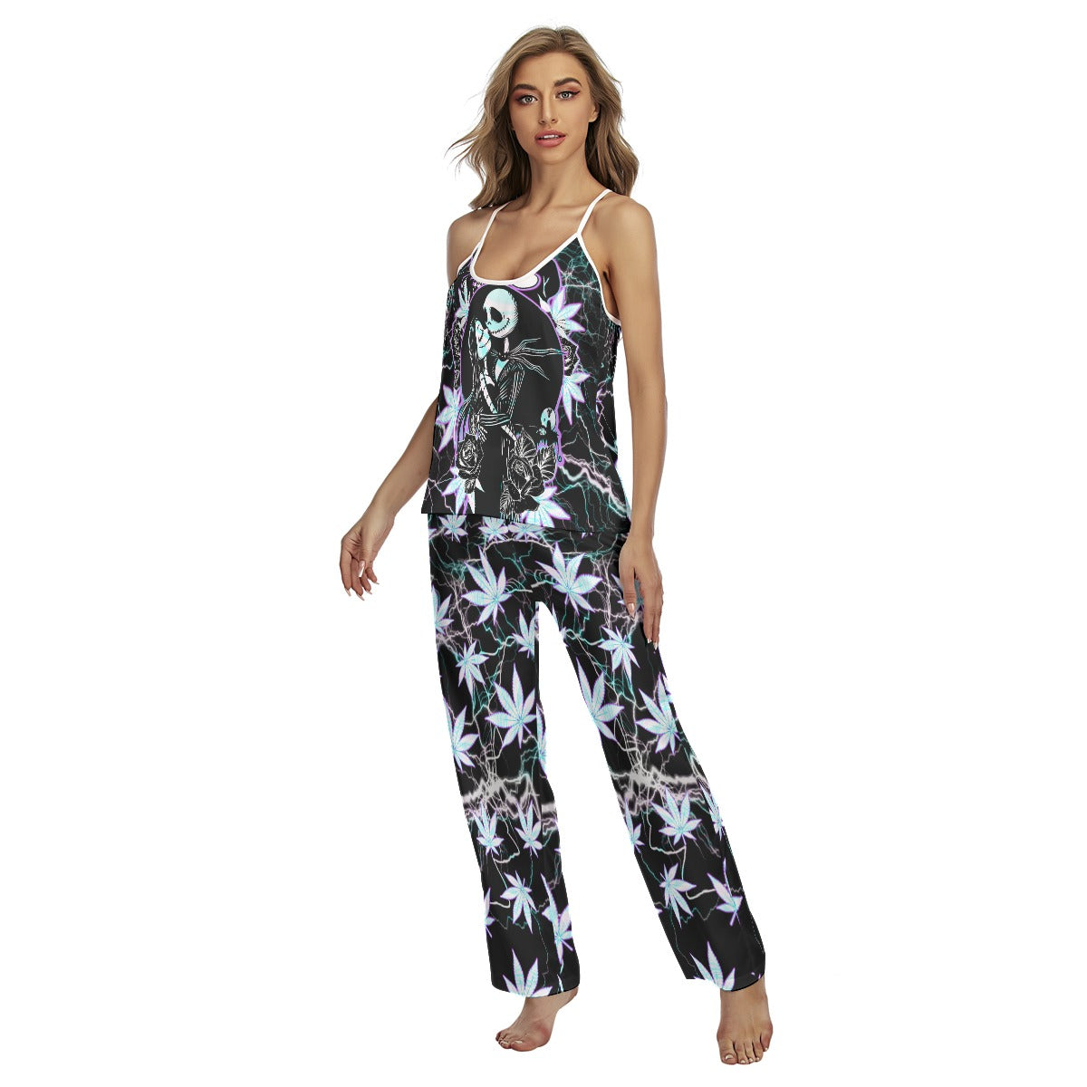 Holographic Skeleton Leaf Cami Pajamas Sets For Women Sleepwears Combo - Wonder Skull