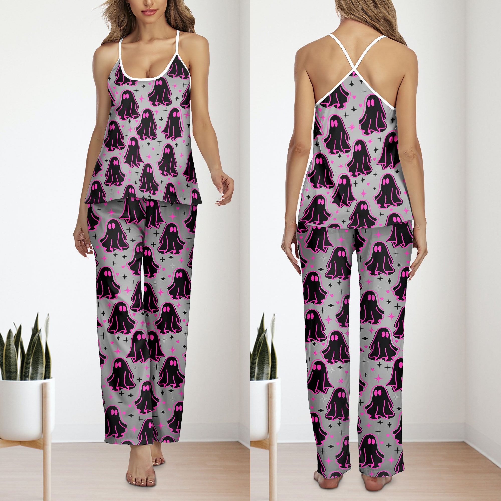Pink Boo Pattern Cami Pajamas Sets For Women Sleepwears Combo