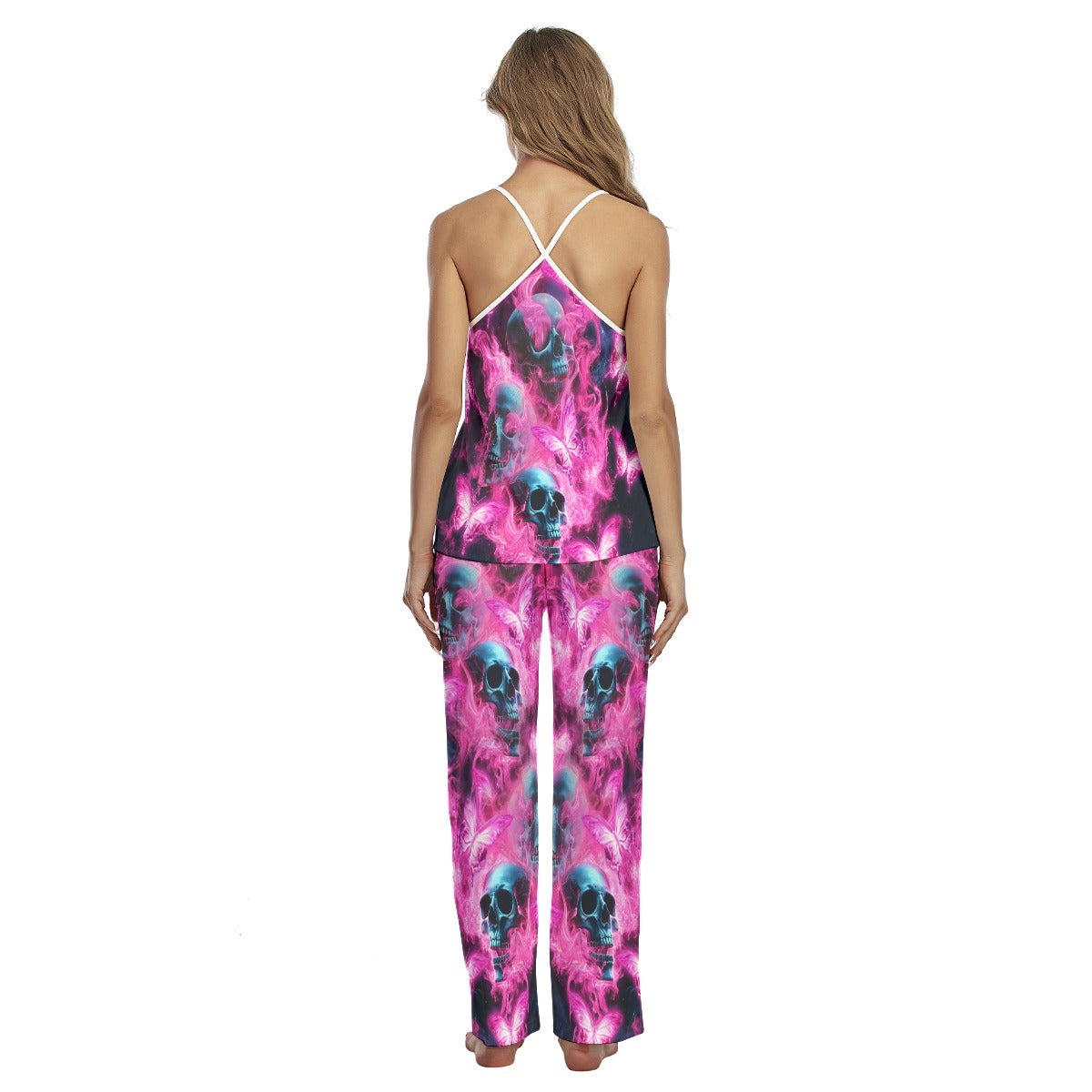 • Unleash Your Inner Rock Star: Whether you're lounging or getting ready to catch some Z’s, the Pink Skull Butterfly Cami Pajama Set will have you feeling like you’ve just stepped out of a gothic dream. Who said comfort and edgy style can't go hand-in-hand?