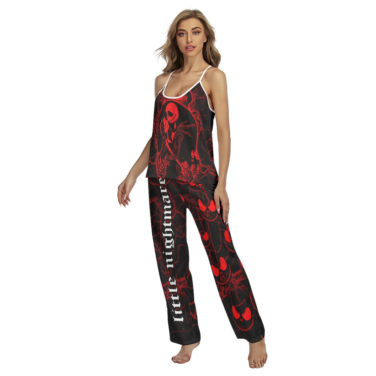Red Thunder Art Cami Pajamas Sets For Women Sleepwears Combo - Wonder Skull