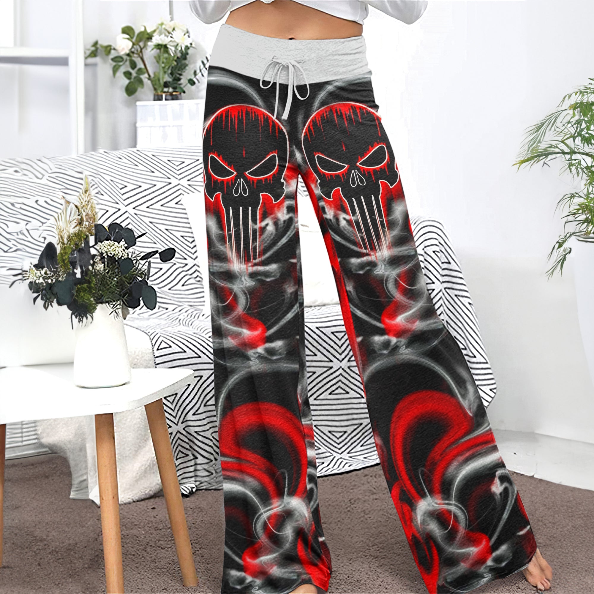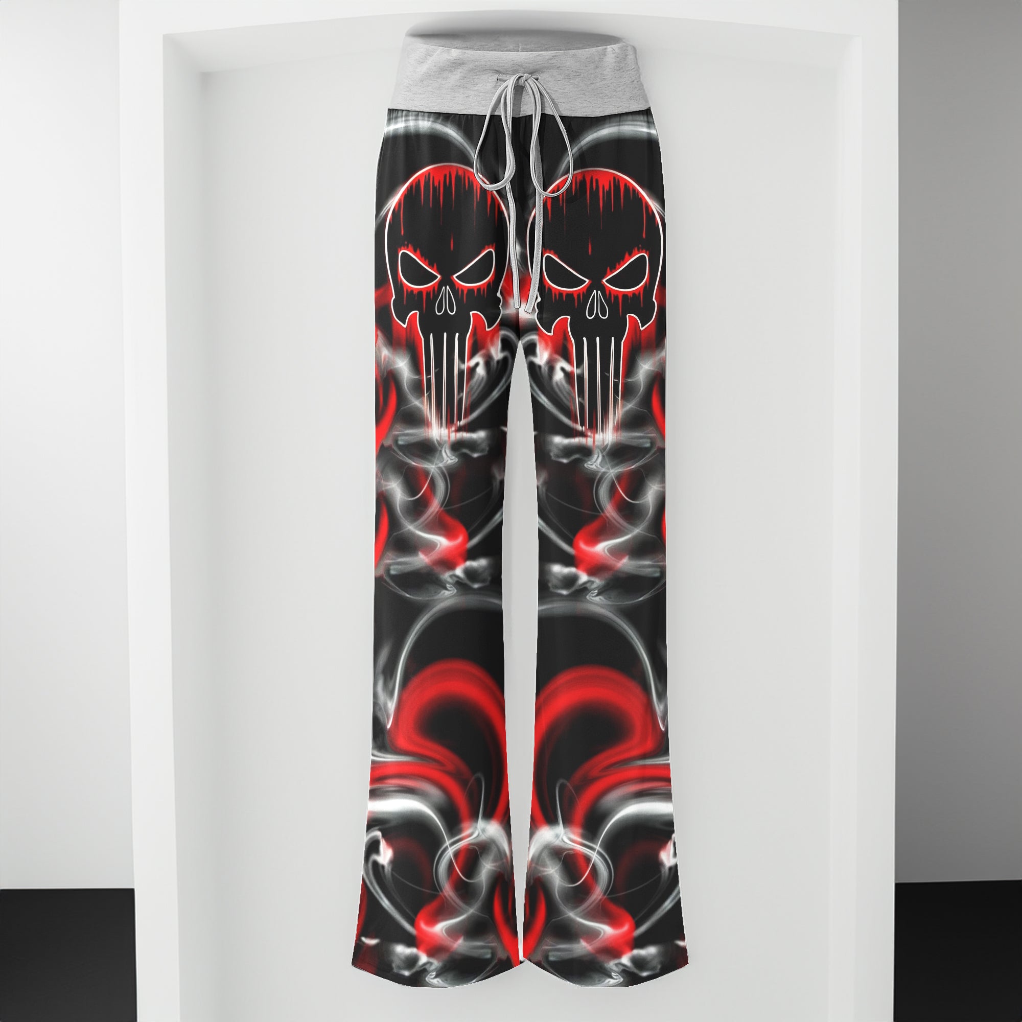 Abstract Swirl Skull Women's High-waisted Wide Leg Pants