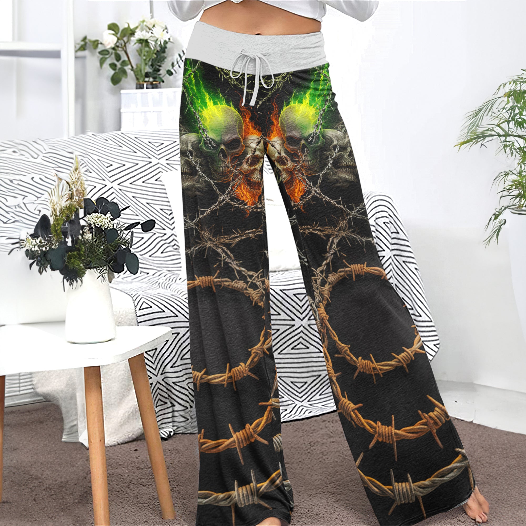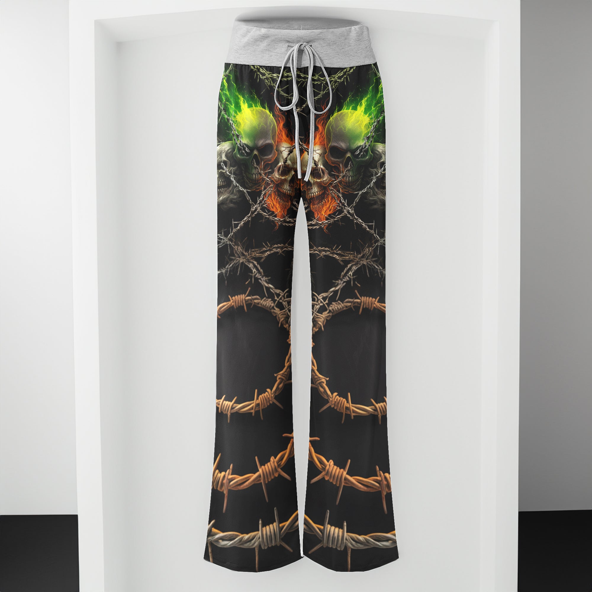Barbed Trinity Skull Women's High-waisted Wide Leg Pants