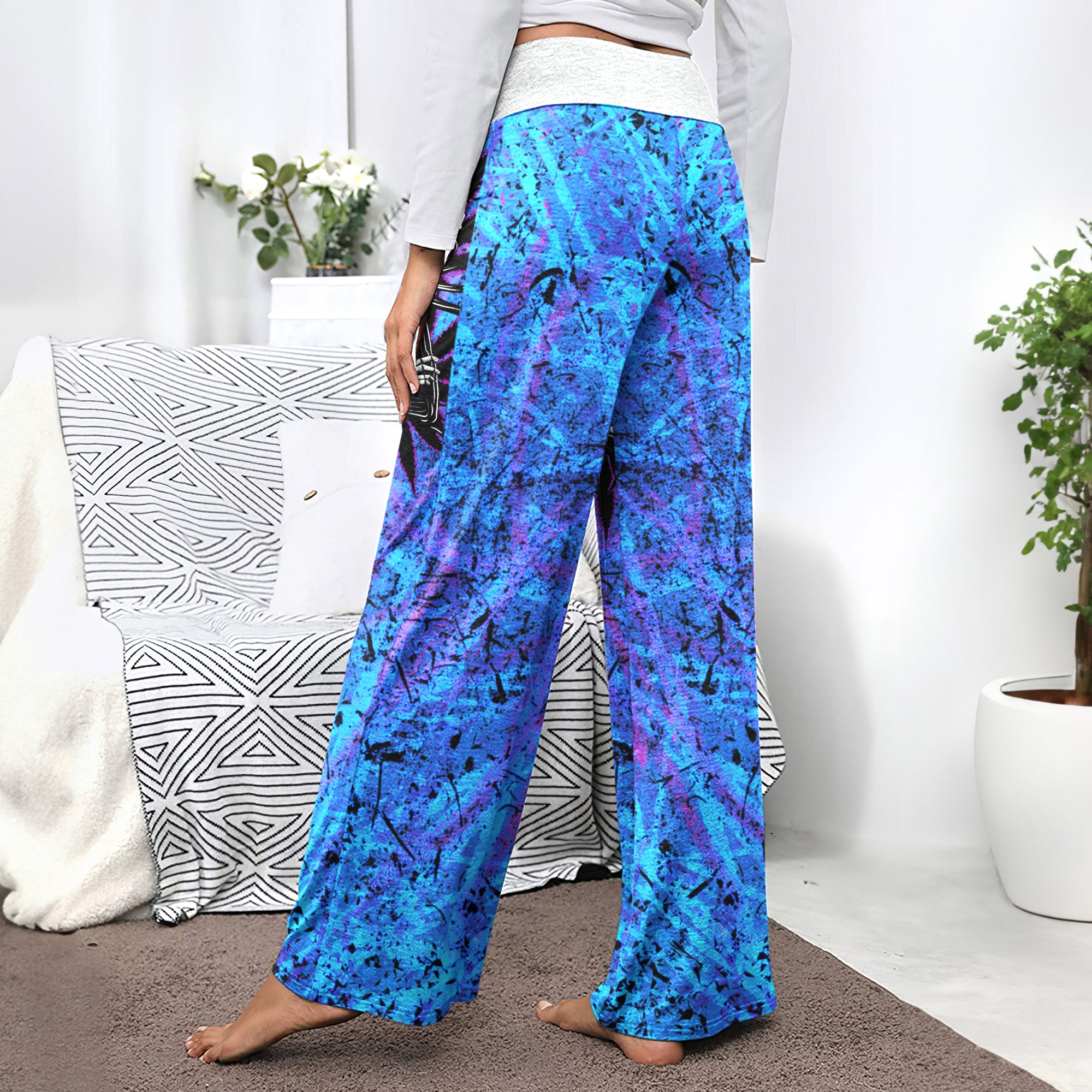 Blue Abstract Skeleton Women's High-waisted Wide Leg Pants
