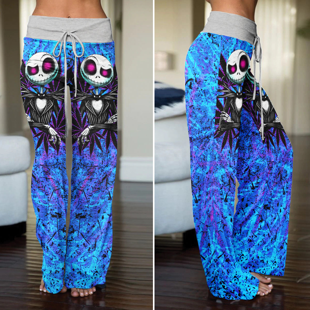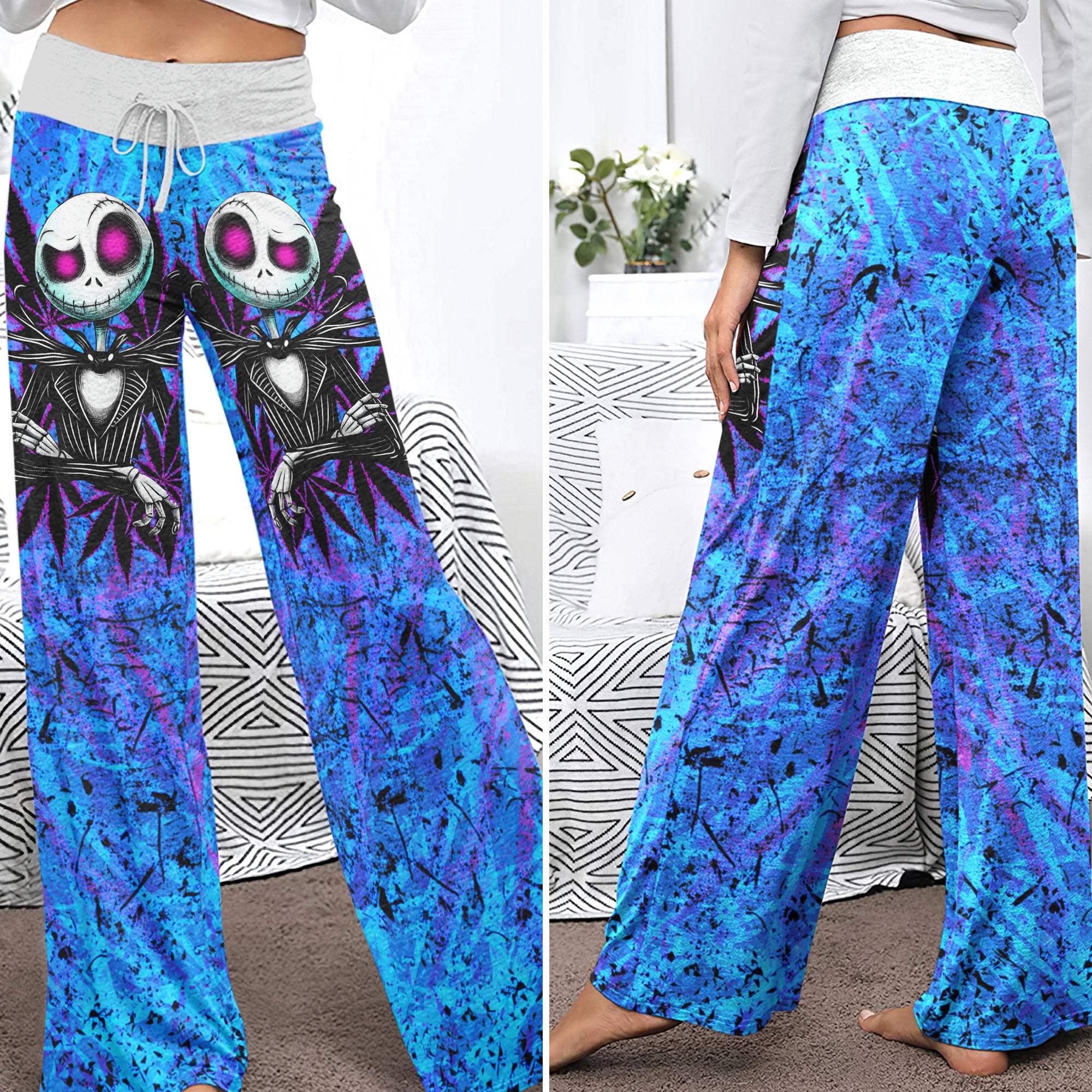 Enjoy the comfort and quality of the Blue Abstract Skeleton High-waisted Wide Leg Pants. Constructed from a premium lightweight fabric, it offers unlimited movement, along with a unique and stylish pattern. It features a wide waistband for a streamlined and flattering fit. Perfect for any occasion, these trousers provide the perfect blend of classic style and modern design.