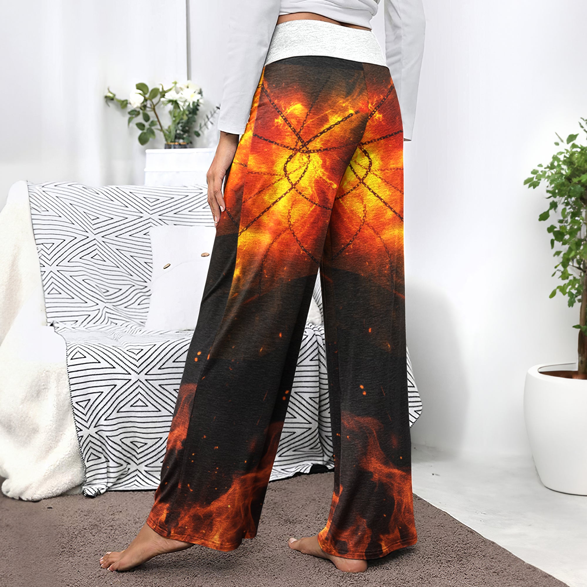 Enjoy the comfort and quality of the Chained Fury Skull High-waisted Wide Leg Pants. Constructed from a premium lightweight fabric, it offers unlimited movement, along with a unique and stylish pattern. It features a wide waistband for a streamlined and flattering fit. Perfect for any occasion, these trousers provide the perfect blend of classic style and modern design.